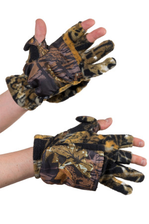 при снятии теплой верхней рукавички, защищенной Oxford PU, на руке остается перчатка, без указательного и среднего пальцев, а также с прорезью для освобождения большого пальца руки