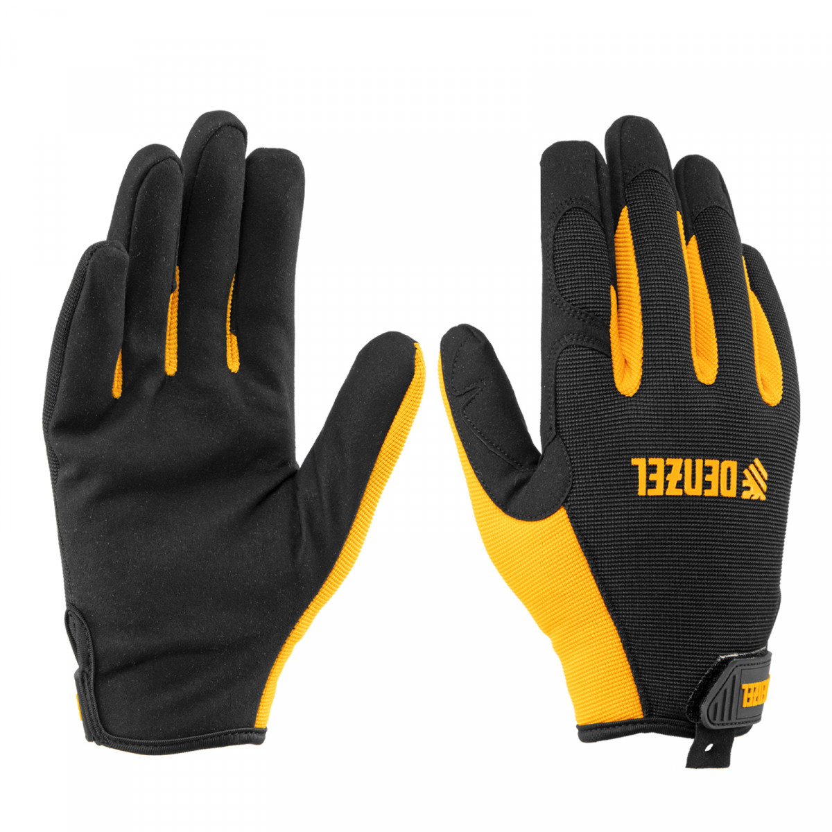 Универсальные перчатки Denzel 67994 размера 10, с манжетами на «липучке», используются для работы со слесарным инструментом. Надежно защищают кожу рук от царапин и мозолей. Пригодятся в мастерской, дома или в гараже.