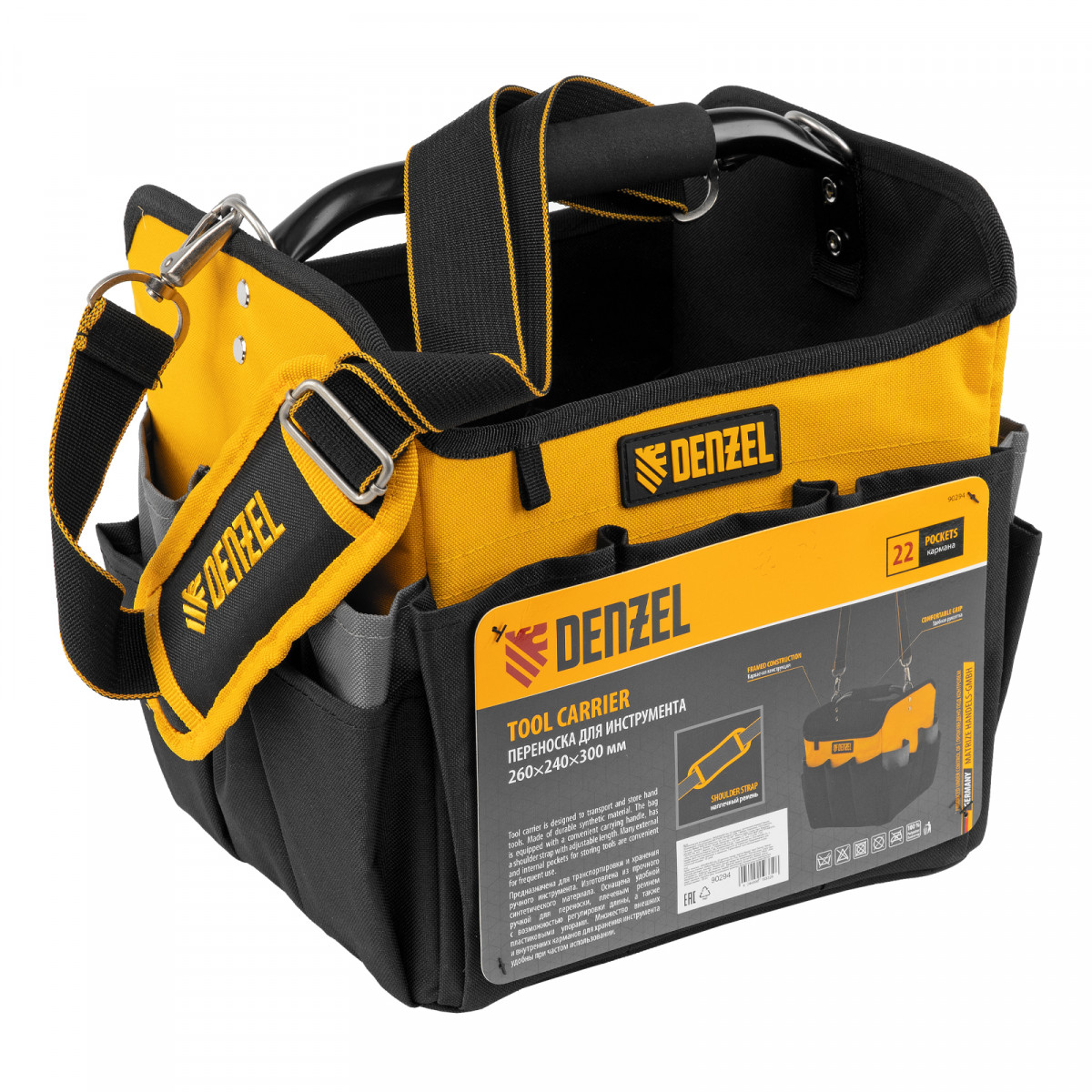 Переноска для инструмента, 260х240х300 мм, 22 кармана, наплечный ремень Denzel