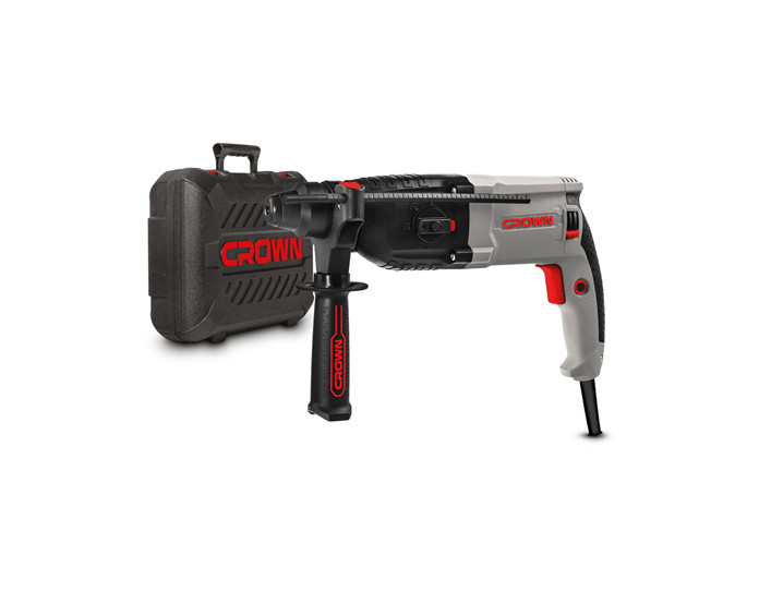 Перфоратор CROWN CT18108 BMC имеет патрон SDS-Plus, три режима - перфоратор может выполнять бурение, сверление и легкие отбойные работы. Имеет электронную регулировку скорости, что позволит выполнять работу более качественно Предохранительная муфта для обеспечения безопасности оператора Оснащен реверсом, который позволяет изменить направление вращательного движения оснастки. В таких случае застревания реверс незаменимая функция, чтобы извлечь сверло из материала без особых усилий. Фиксация кнопки в включенном положении и обрезиненная рукоятка для проведения продолжительных работ Имеет режим поворота оснастки, незаменимый режим при использовании долота
