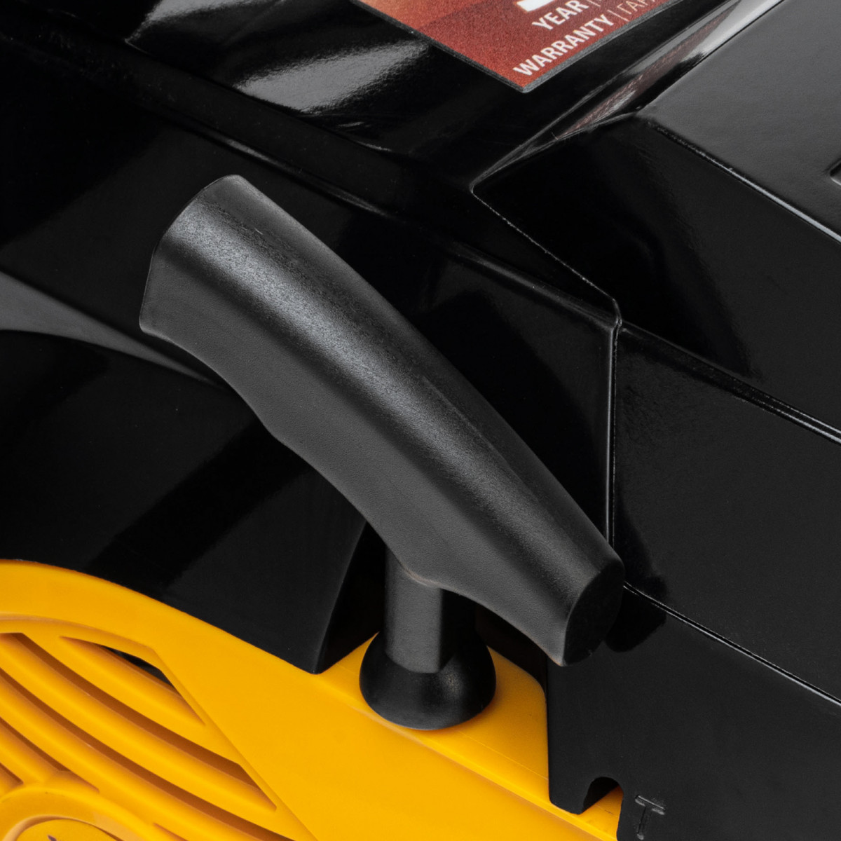 - Стальной зубчатый упор — пилу удобно фиксировать в процессе работы для повышения качества реза и уменьшения отдачи.