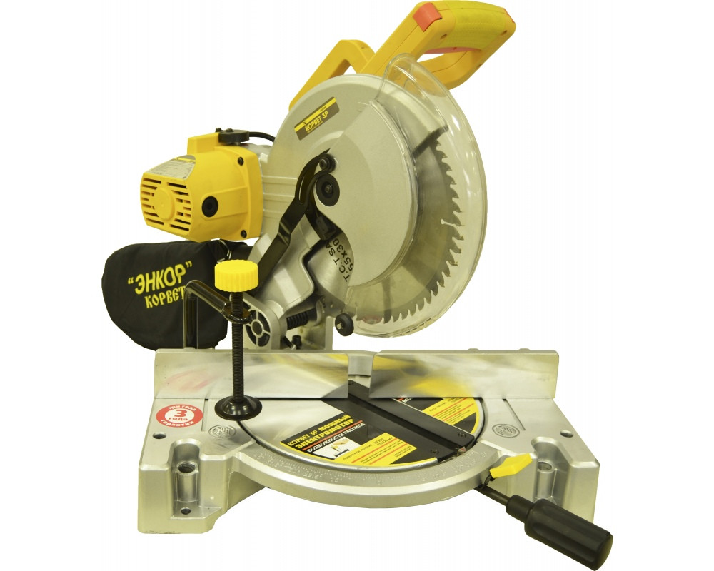 Торцовочная пила Энкор Корвет-3Р 90031 пилит заготовки из мягких и твердых пород древесины. При использовании специальных дисков, можно распилить также ламинат, пластик, алюминиевый профиль и т.д. Благодаря блокировке шпинделя, можно просто сменить оснастку. Конструкцией предусмотрен электронный тормоз электродвигателя, что обеспечивает быструю остановку пильного диска. Удлинители стола позволяют работать с заготовками больших размеров.