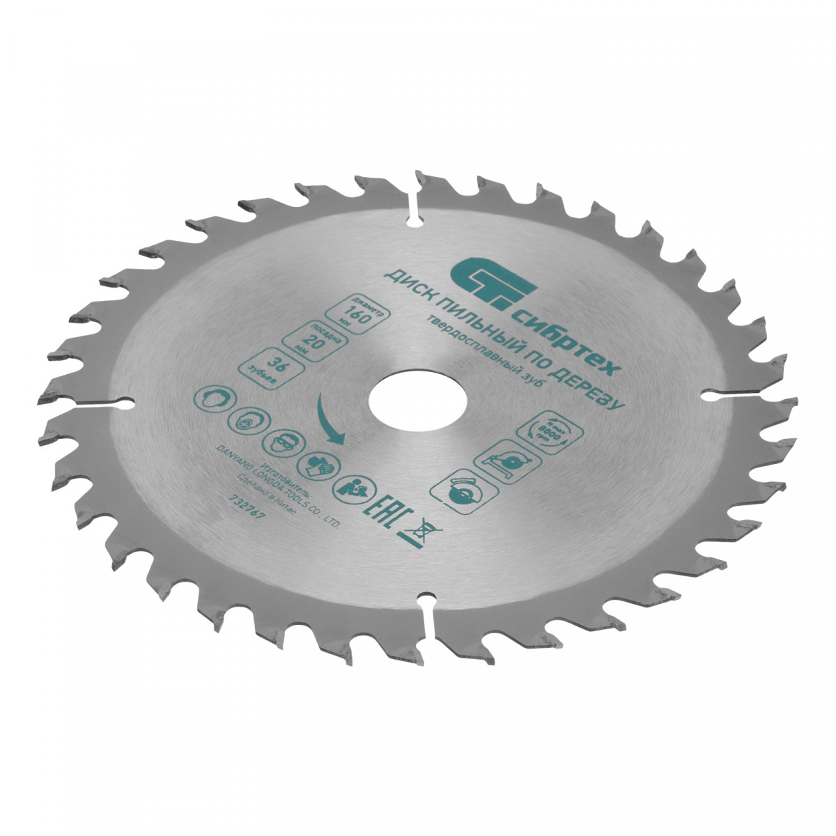 Пильный диск по дереву, 160 х 20 мм, 36 зубьев, кольцо 16/20 Сибртех