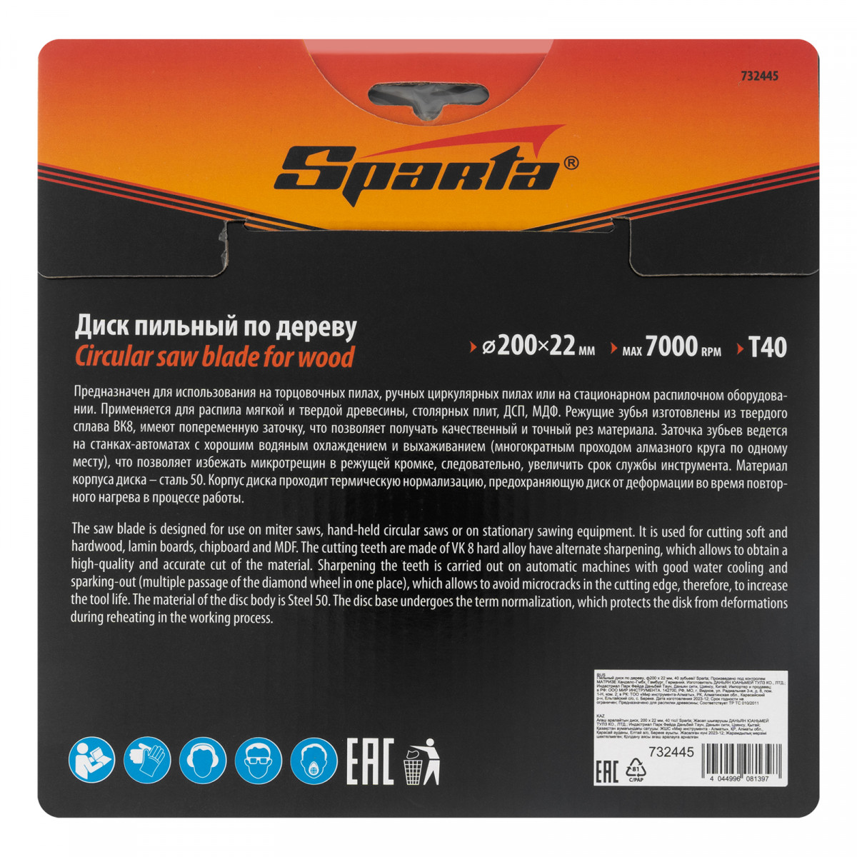 Пильный диск Sparta 732445 диаметром 200 х 22 мм, с 40 зубьями, используется для распила древесины мягких и твердых пород, фанеры, плит ДСП и МДФ. 40 зубьев обеспечивают оптимальное по скорости и качеству пиление. Благодаря попеременной заточке зубцов достигается высокое качество реза. Диск устанавливается на торцовочную, циркулярную пилу либо на распиловочный станок, применяется в бытовой сфере.