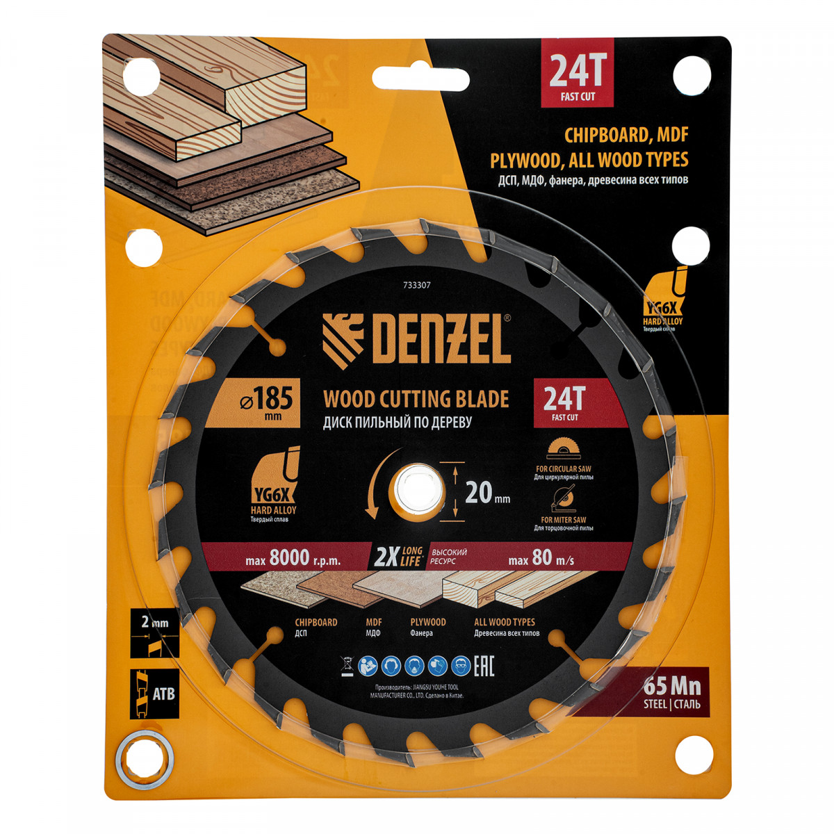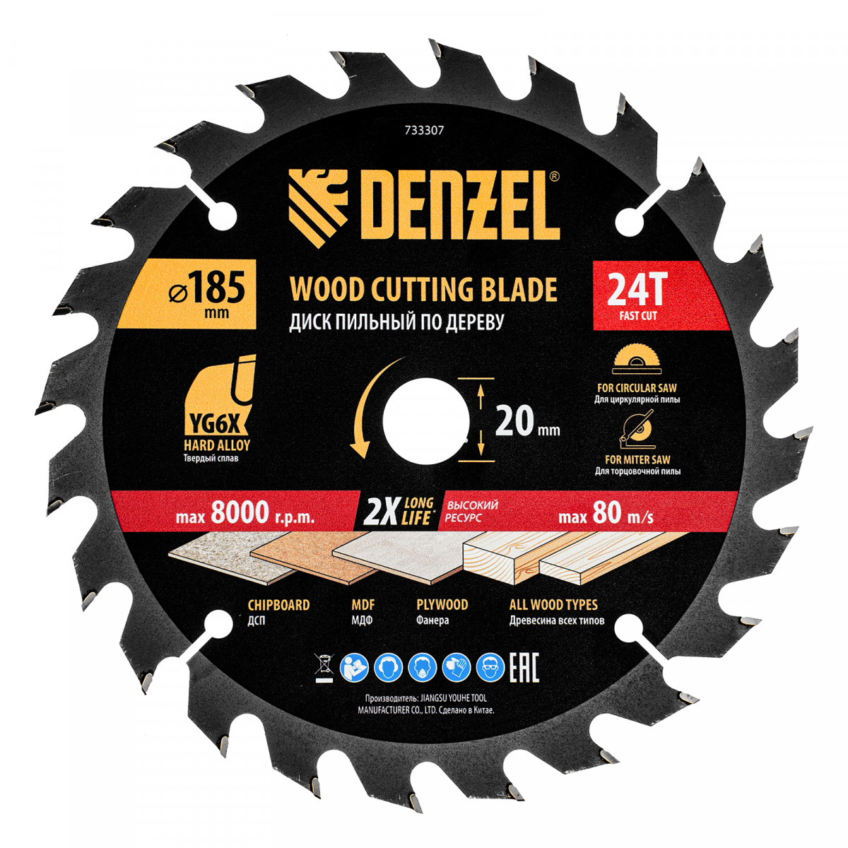 Пильный диск по дереву ф185х 20 мм, 24 зубьев Denzel
