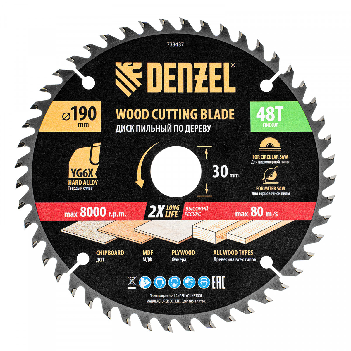 Пильный диск по дереву ф190 х 30 мм, 48 зубьев, тонкий Denzel