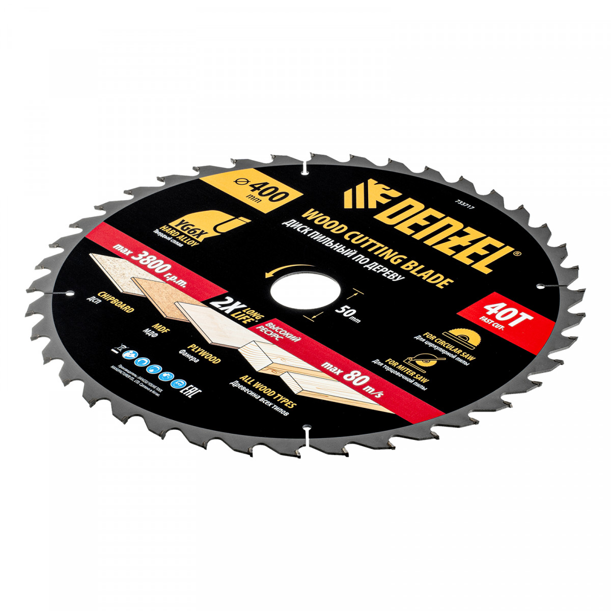 Пильный диск по дереву ф400 х 50 мм, 40 зубьев Denzel