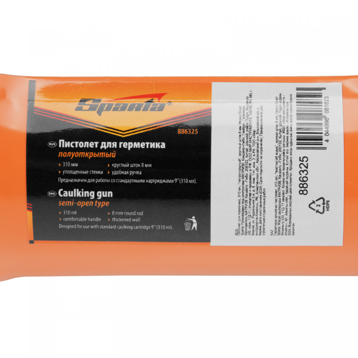 Пистолет для герметика, 310 мл, "полуоткрытый", круглый шток 8 мм, Heavy Duty Sparta