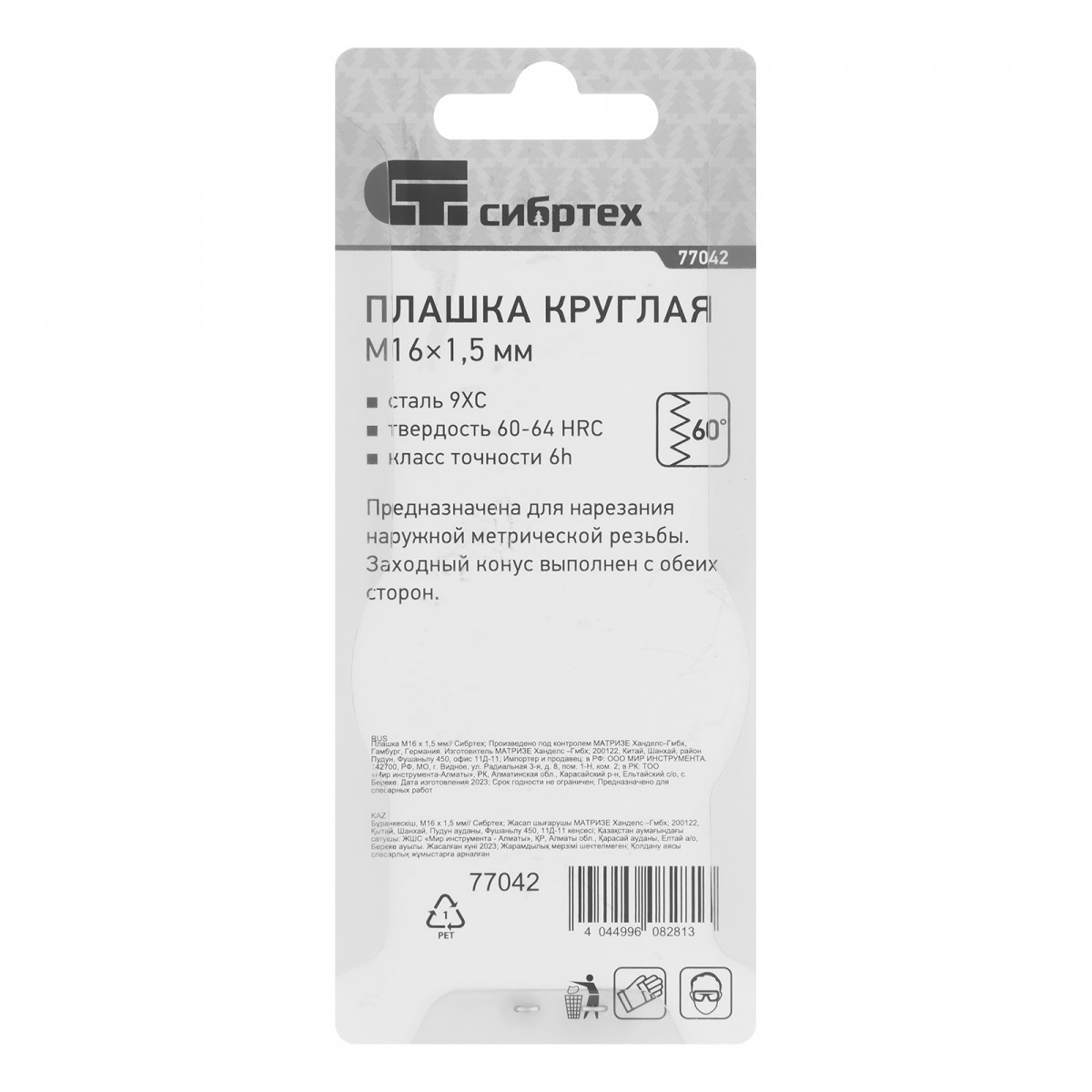 Плашка Сибртех 77042 типоразмера М16 х 1,5 мм предназначена для нарезания внешней метрической резьбы. Проста в использовании, поэтому пригодится даже начинающему мастеру для проведения слесарных и монтажных работ в быту. Цельная конструкция плашки позволяет полностью захватить деталь и нарезать высокоточную резьбу за один проход.