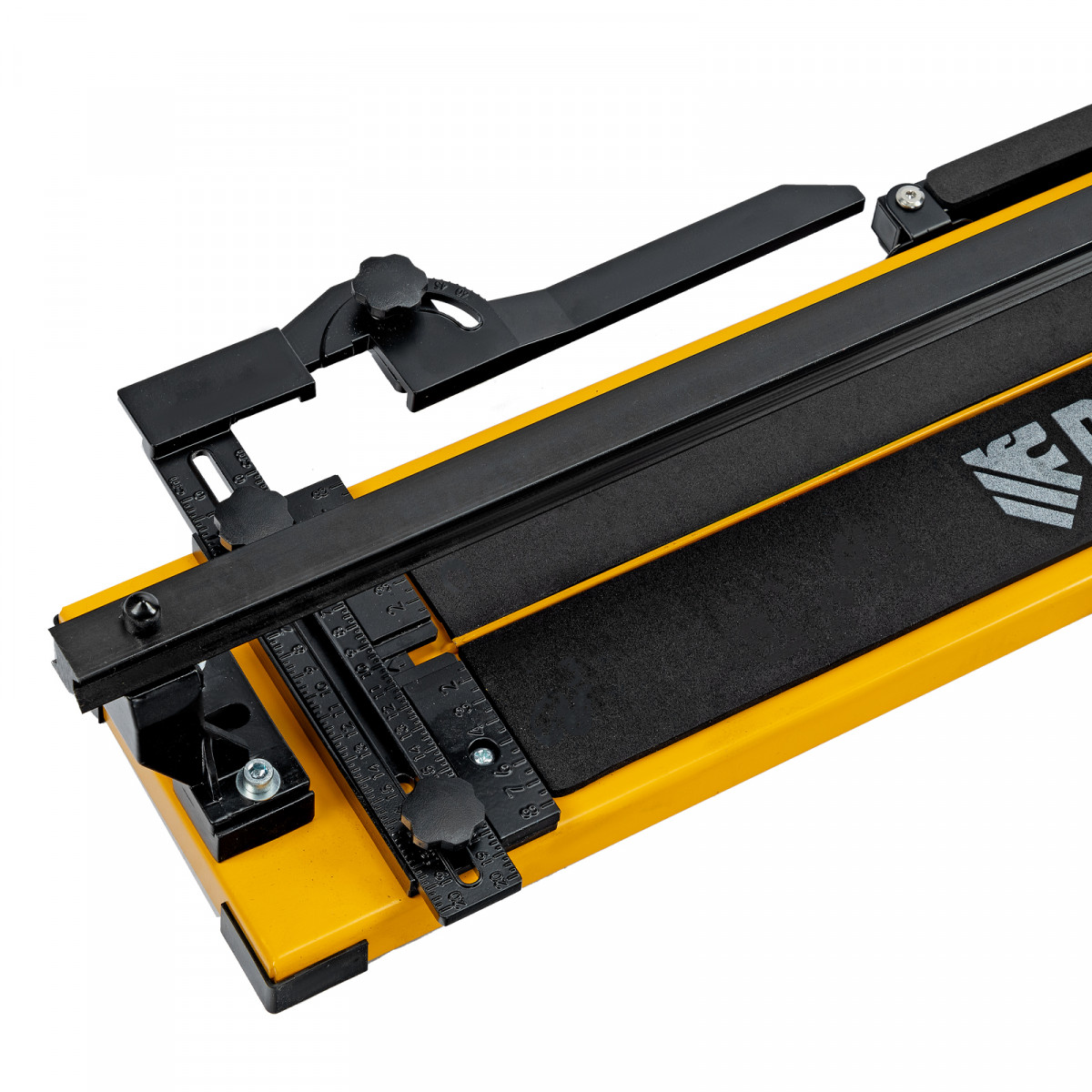 - Удобная работа — благодаря противоскользящим накладкам плиткорез не смещается даже на гладких поверхностях.