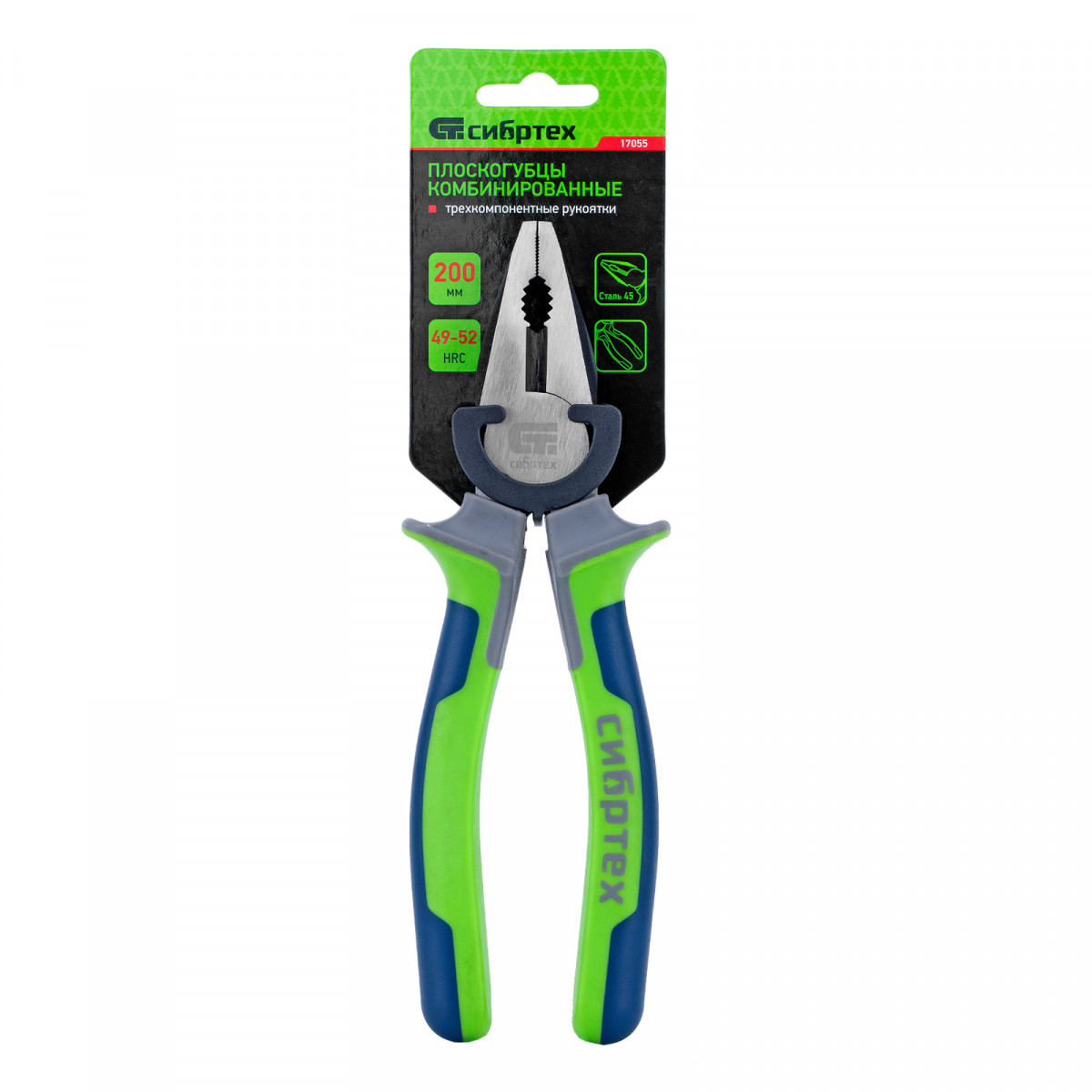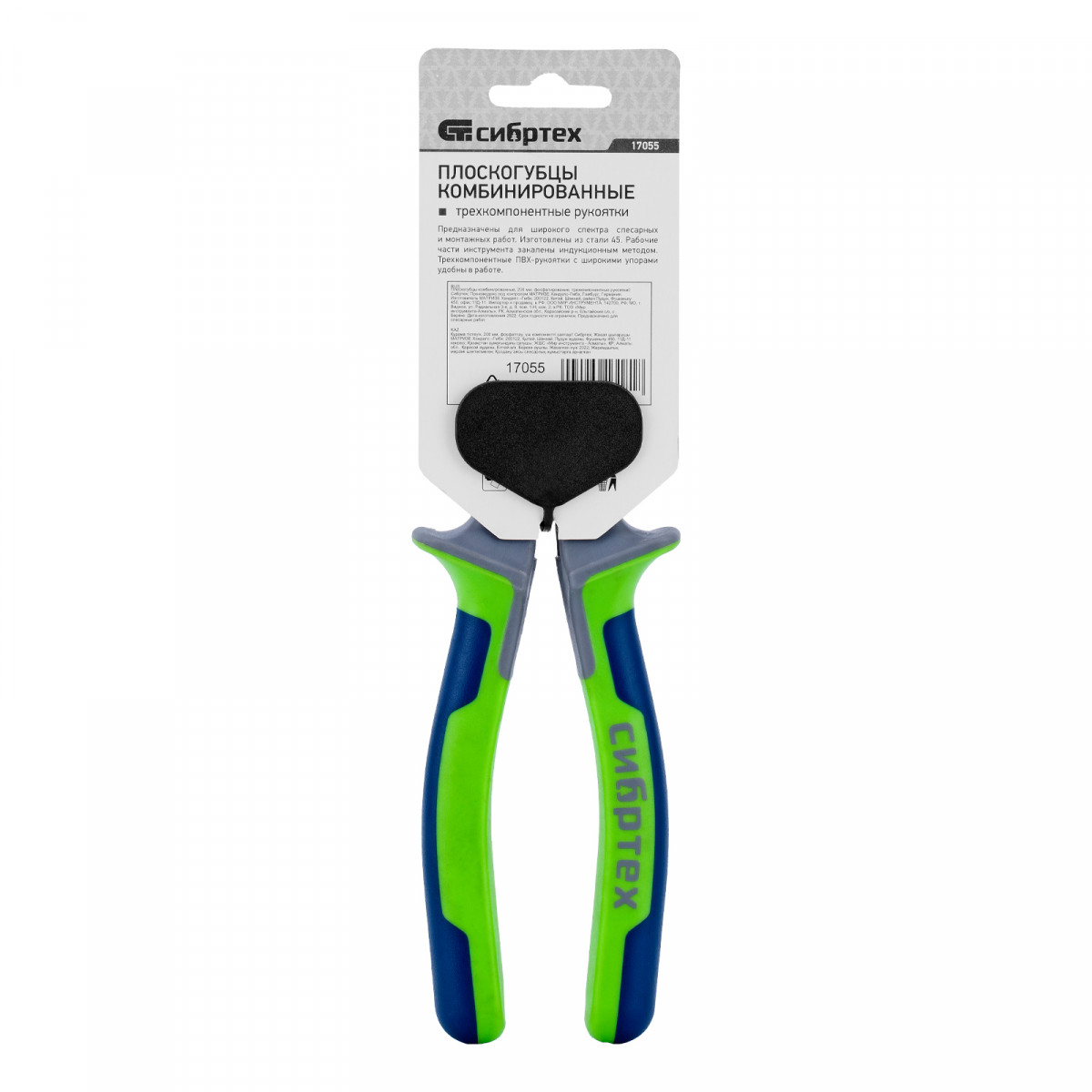 Плоскогубцы комбинированные, 200 мм, фосфатирование, трехкомпонентные рукоятки Сибртех