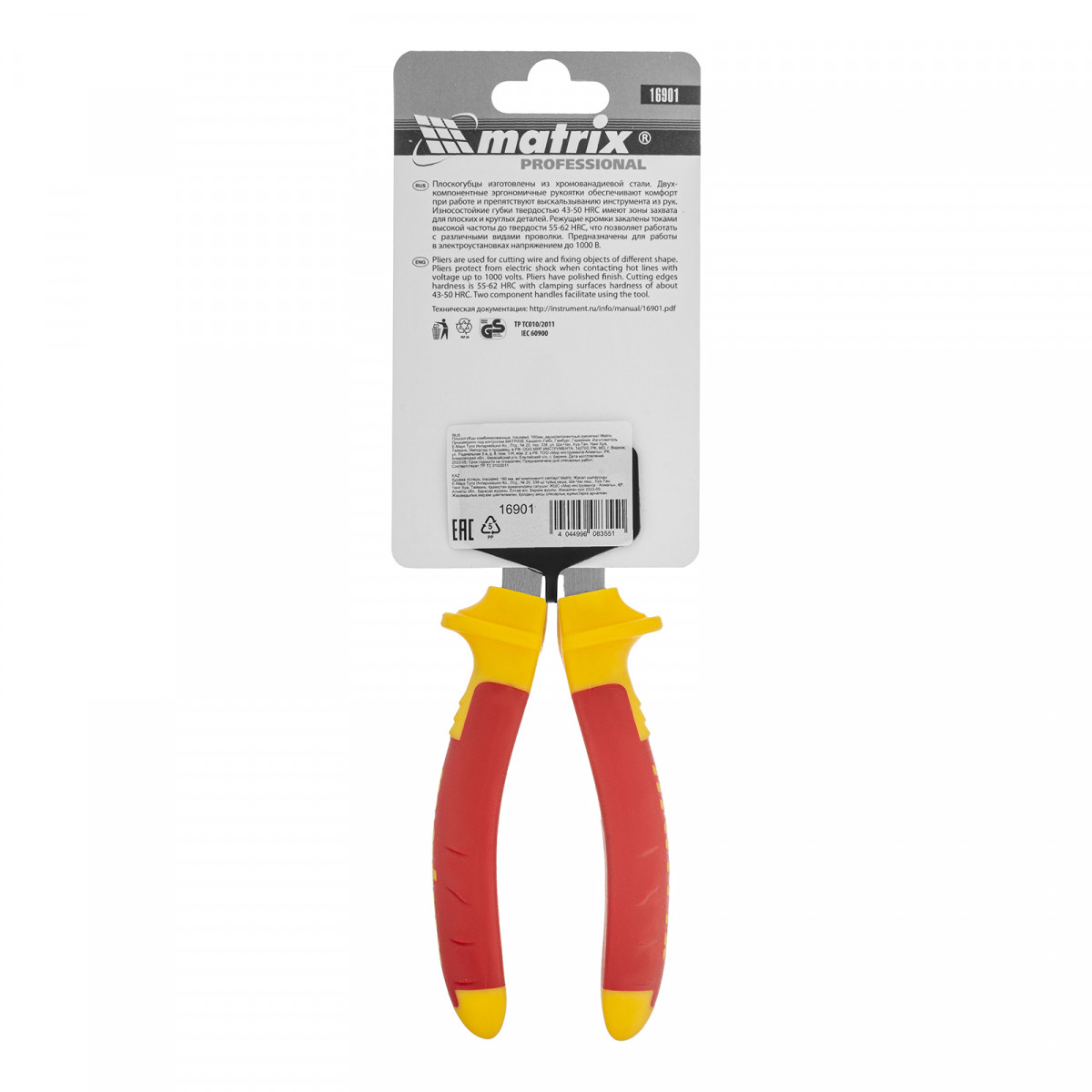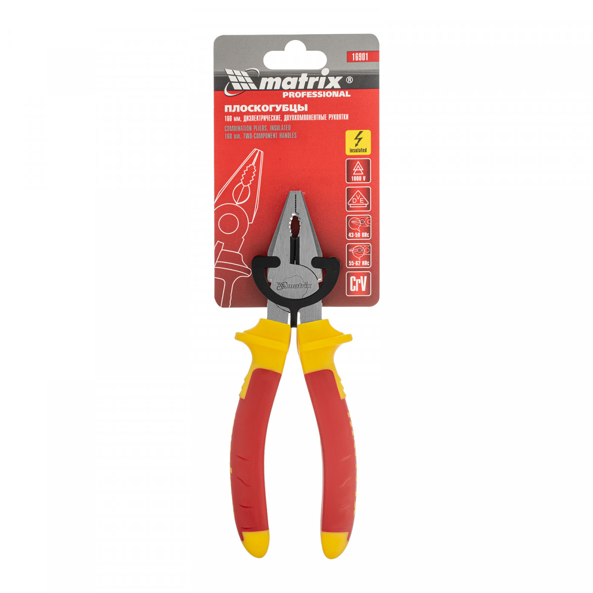 Плоскогубцы комбинированные, Insulated, 160 мм, двухкомпонентные рукоятки Matrix Professional