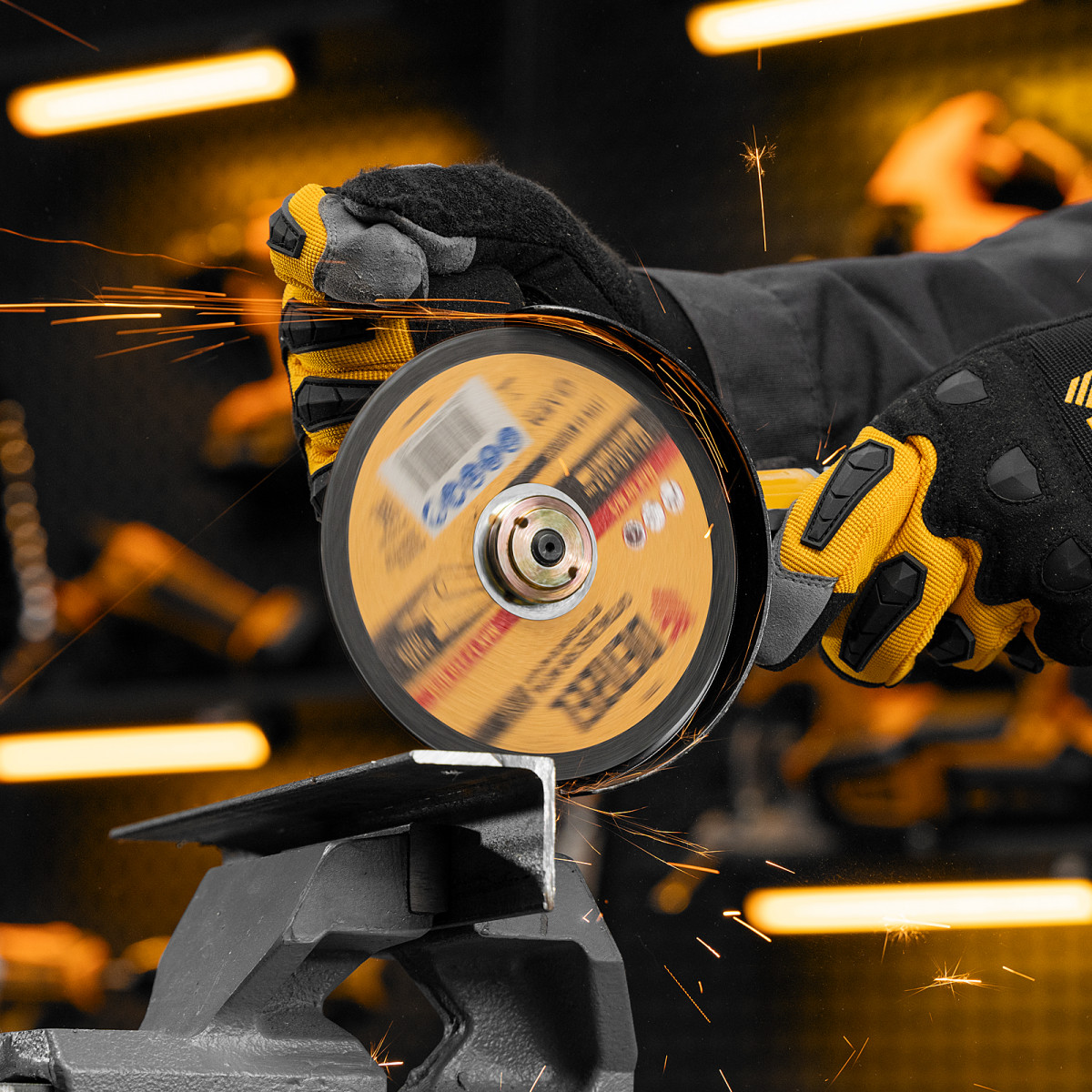 - Высокая эффективность — инструмент справляется с разрезанием материалов толщиной до 35 мм, оптимально подходит для профессионального применения на строительных площадках, в сварочных и арматурных цехах, автосервисах.