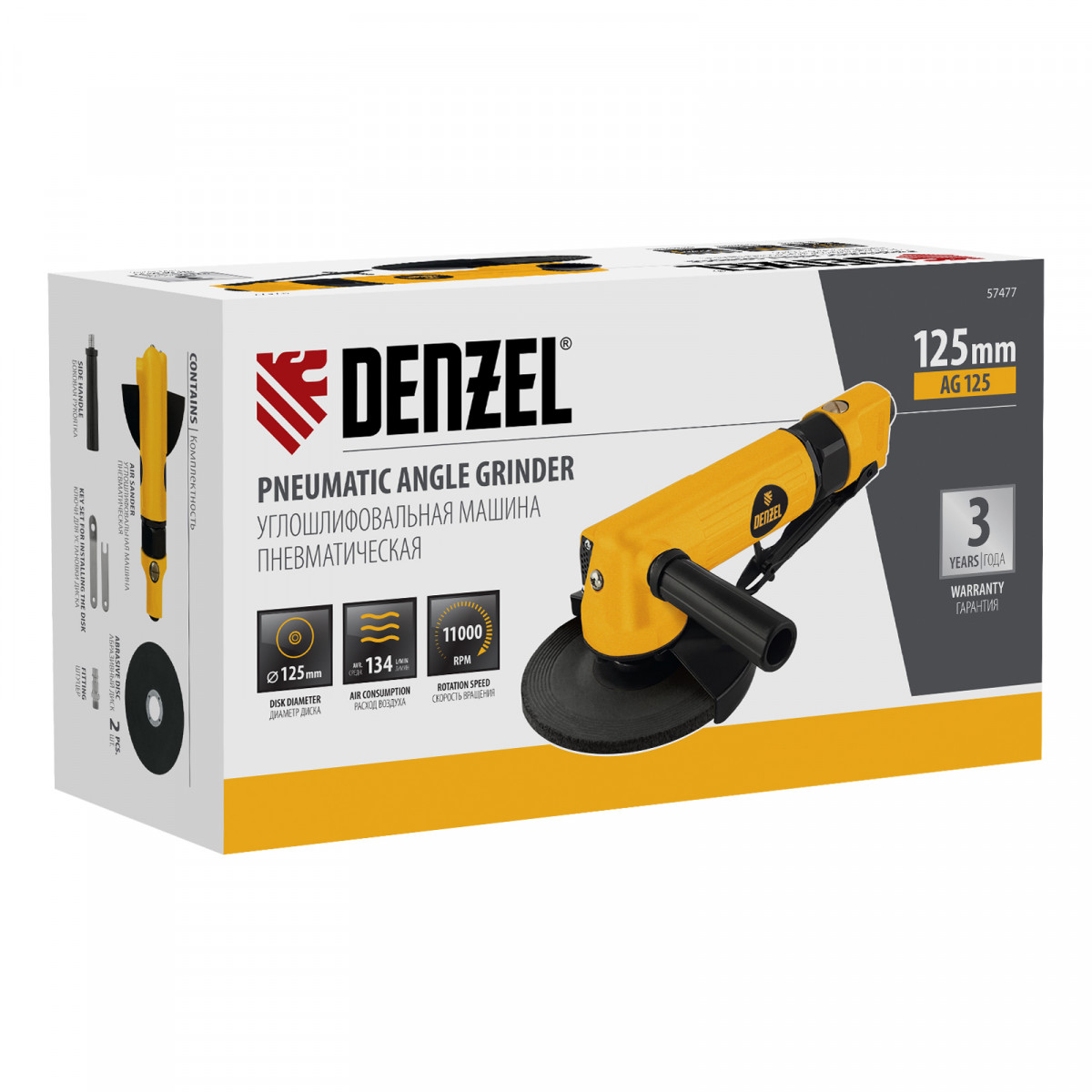 Пневматическая углошлифовальная машина AG125, 11000 об/мин, 125 мм, 186 л/мин Denzel