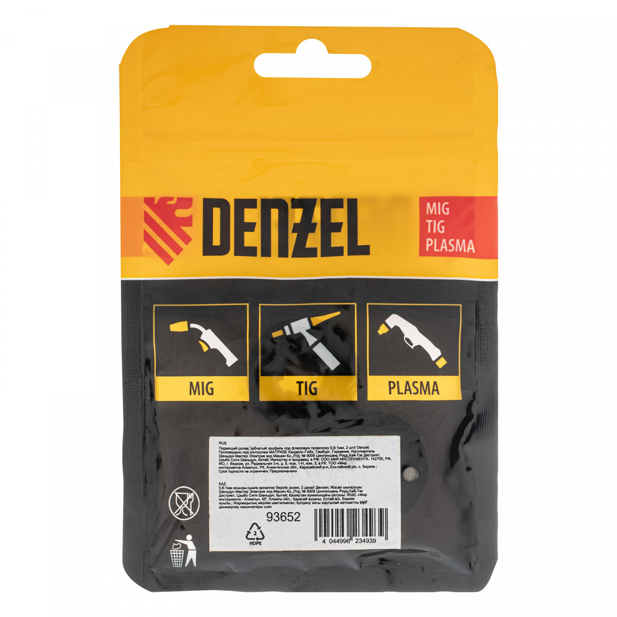 Подающий ролик Denzel 93652 с зубчатым профилем, 2 шт. в упаковке, — элемент конструкции сварочного аппарата, предназначенный для протягивания флюсовой проволоки диаметром 0,8-1 мм. Совместим с моделями Denzel 94313, 94314, 94361, а также со сварочными полуавтоматами других торговых марок.