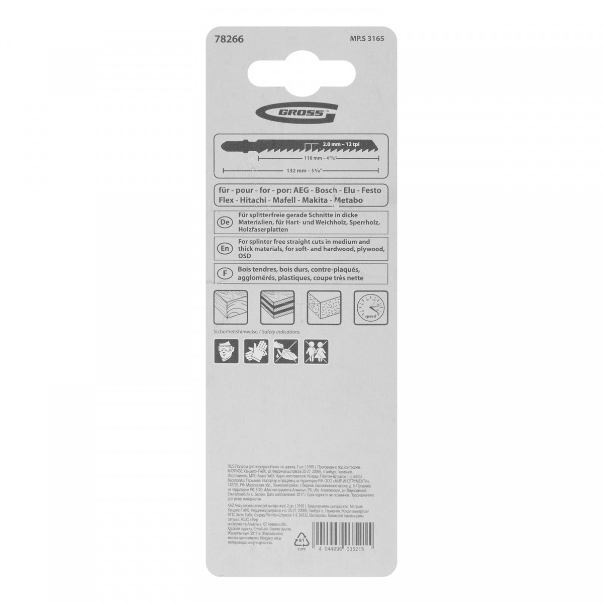 Полотна по дереву Gross 78266, 2 шт. (3165), являются сменными режущими элементами для большинства современных моделей электролобзиков. Осуществляют прямой рез деревянных заготовок и изделий толщиной 3-80 мм. Высококачественные полотна пригодятся профессиональным мастерам в ходе проведения ремонтных и строительных работ.