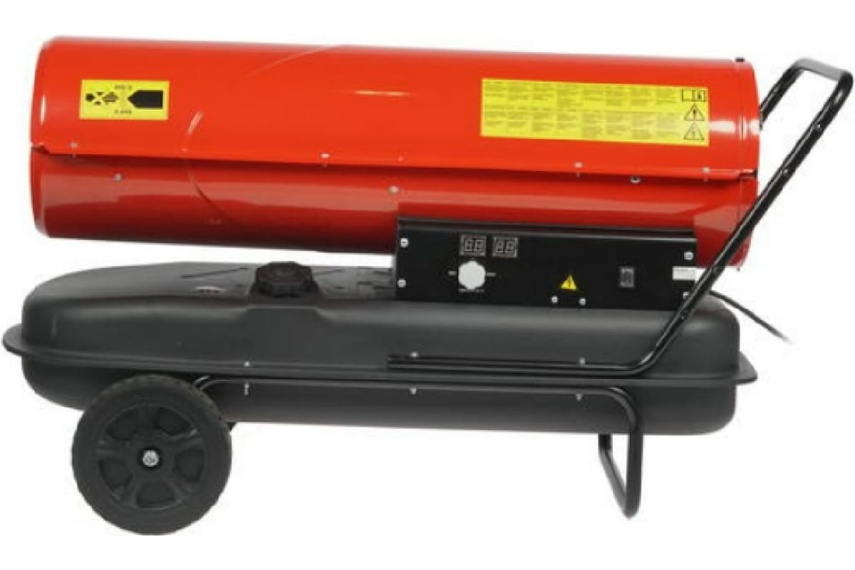 Корпус модели выполнен из антикоррозийного материала и обладает повышенной теплоизоляцией. Благодаря термостату вы можете регулировать степень нагрева и нужную температуру. Тепловую пушку легко перемещать по помещению при помощи колес.