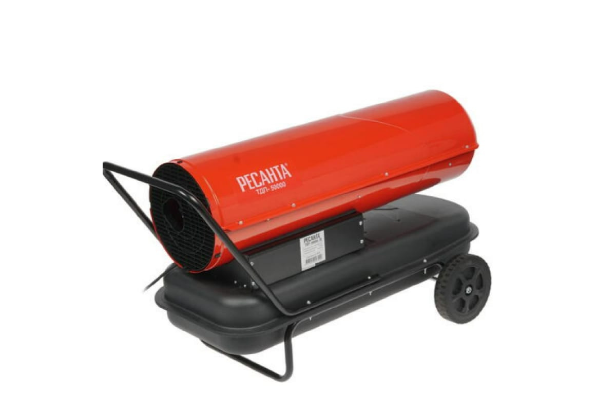 Ресанта ТДП-50000 — производительный обогревательный прибор для нежилых и проветриваемых помещений: складов, гаражей, мастерских, строительных площадок. Устройство имеет понятную систему подключения, быстро нагревается и экономично расходует топливо. Дизельная теплопушка мощностью 50 кВт работает от сети 220-230В. Оснащена резервуаром емкостью 56 л. Производительности 1500 м³/час и расхода дизеля или керосина 3,96 кг/ч достаточно для непрерывного обогрева неотапливаемой площади в течение 12 часов.