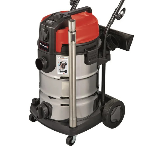 Строительный пылесос является универсальным многоцелевым пылесосом. Походит для сухой и влажной уборки, а также для работы вместе с электроинструментом Einhell. Сильный Bi-Turbo двигатель работает очень тихо и, благодаря использованию самых современных компонентов, достигает очень большой силы всасывания и потребляет на 50% меньше энергии. 30 литровый бак из нержавеющей стали предлагает достаточную емкость для множества различных задач по очистке в доме и мастерской. Благодаря множеству аксессуаров, таких как всасывающий шланг 3 м длиной с регулятором воздуха на ручке, телескопическая трубка из нержавеющей стали, переходник для подключения электроинструментов, оборудование сразу готово к использованию. Преимущества ECO пылесос, высокая сила всасывания / малое энергопотребление Фильтр класса L в комплекте Бак из нерж. стали емкостью 30 л Функция выдува 2 больших колеса и 2 р