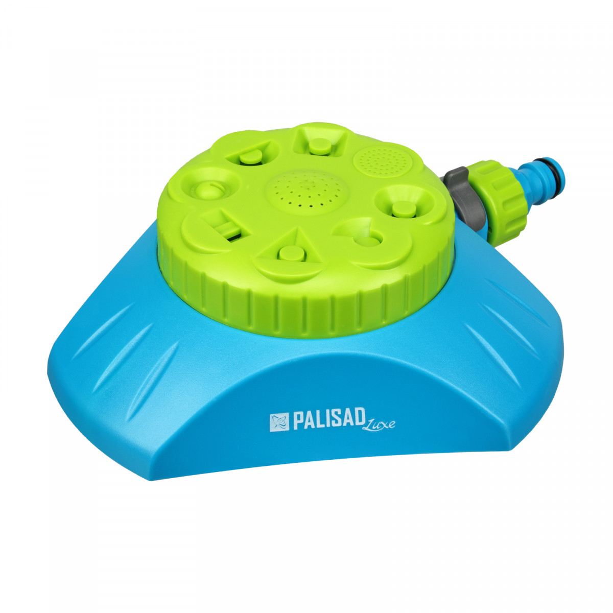 Распылитель-дождеватель Palisad Luxe 65804 с 8 режимами работы, с регулировкой угла полива и утяжеленной базой используется для орошения газонов и садовых участков. Максимальная площадь полива составляет 150 кв. м, угол полива регулируется в диапазоне от 30 до 360°. Наличие 8 режимов позволяет организовать орошение секторов различной площади.Преимущества: - Утяжеленная база — распылитель можно расположить на участке с уклоном до 15%. - 8 режимов — треугольный, секторный, полукруговой, квадратный, круговой, прямоугольный полив, полив полосой, распыление. - Надежность — дождеватель выдерживает минимальное рабочее давление 2 бара, максимальное — 4 бара. - Универсальность — распылитель совместим со всеми системами полива Palisad и Palisad Luxe.