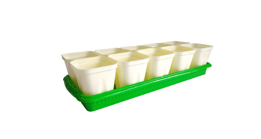 Рассадник для цветов и рассады на 10 стаканчиков с поддоном для оттока влаги.Состав набора для рассады:- поддон для стаканчиков 375*150*40 мм (1 шт.)- стаканчики с выдвижным дном 250 мл (10 шт.)Ящики предназначены для многоразового использования. Легкие, удобные, приятных оттенков - компактно размещаются на подоконниках и стеллажах для рассады и цветов.