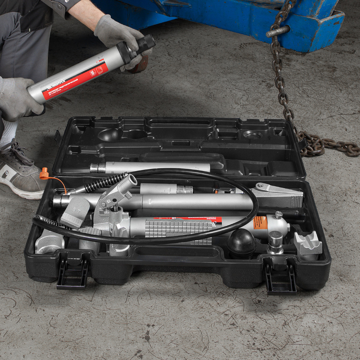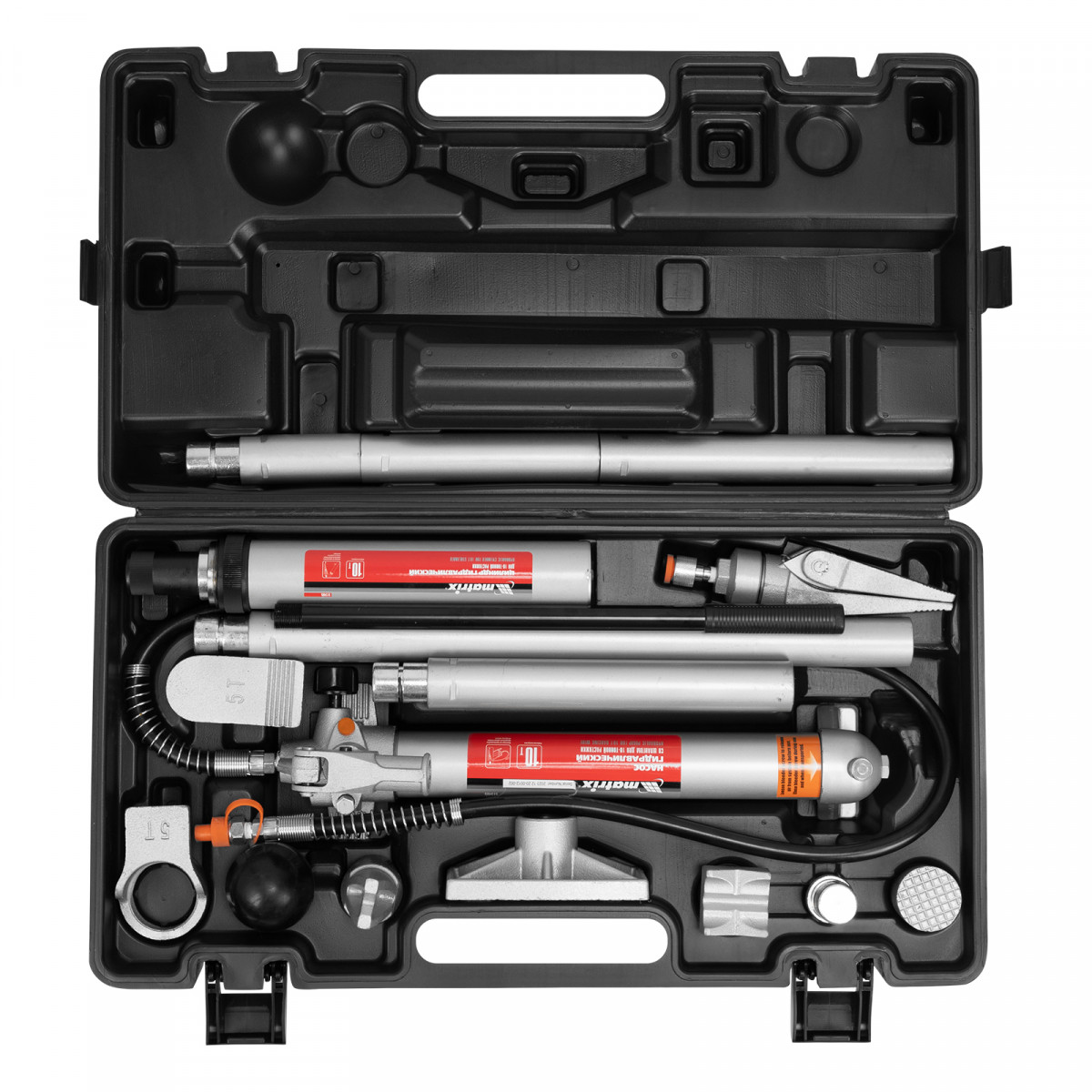 Растяжка гидравлическая, 10 т, набор из 17 предметов, 7 сменных насадок, в пластиковом кейсе Matrix