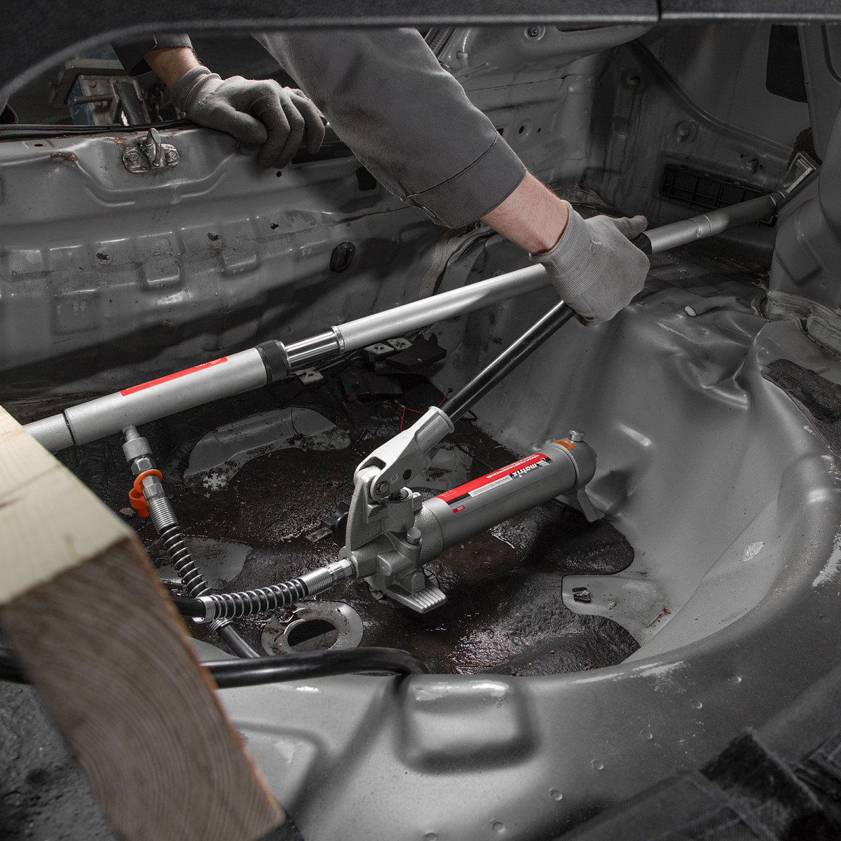 Гидравлическая растяжка Matrix 513405, рассчитанная на усилие до 10 т, входит в набор из 17 предметов — гидронасоса, цилиндра, удлинителя, опорной площадки, адаптера и 7 сменных насадок в пластиковом кейсе. Используется для восстановления геометрии металлических изделий. Можно выбрать оптимальную насадку в зависимости от марки автомобиля, а также области и степени повреждения. Растяжка будет полезна для выполнения кузовных работ и рихтовки металлоконструкций.