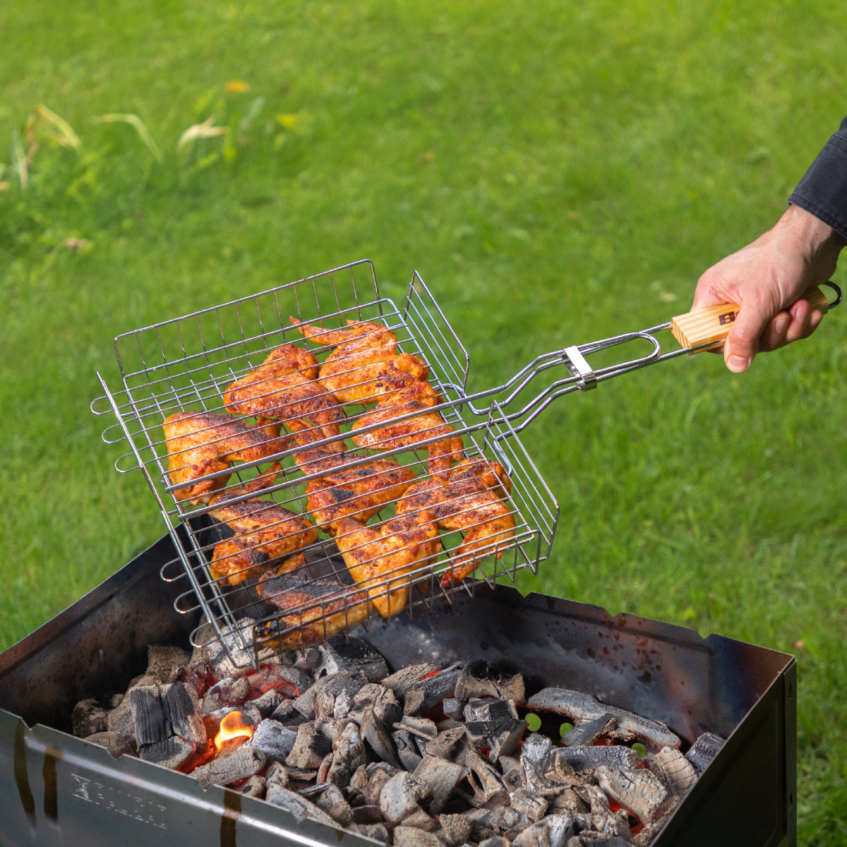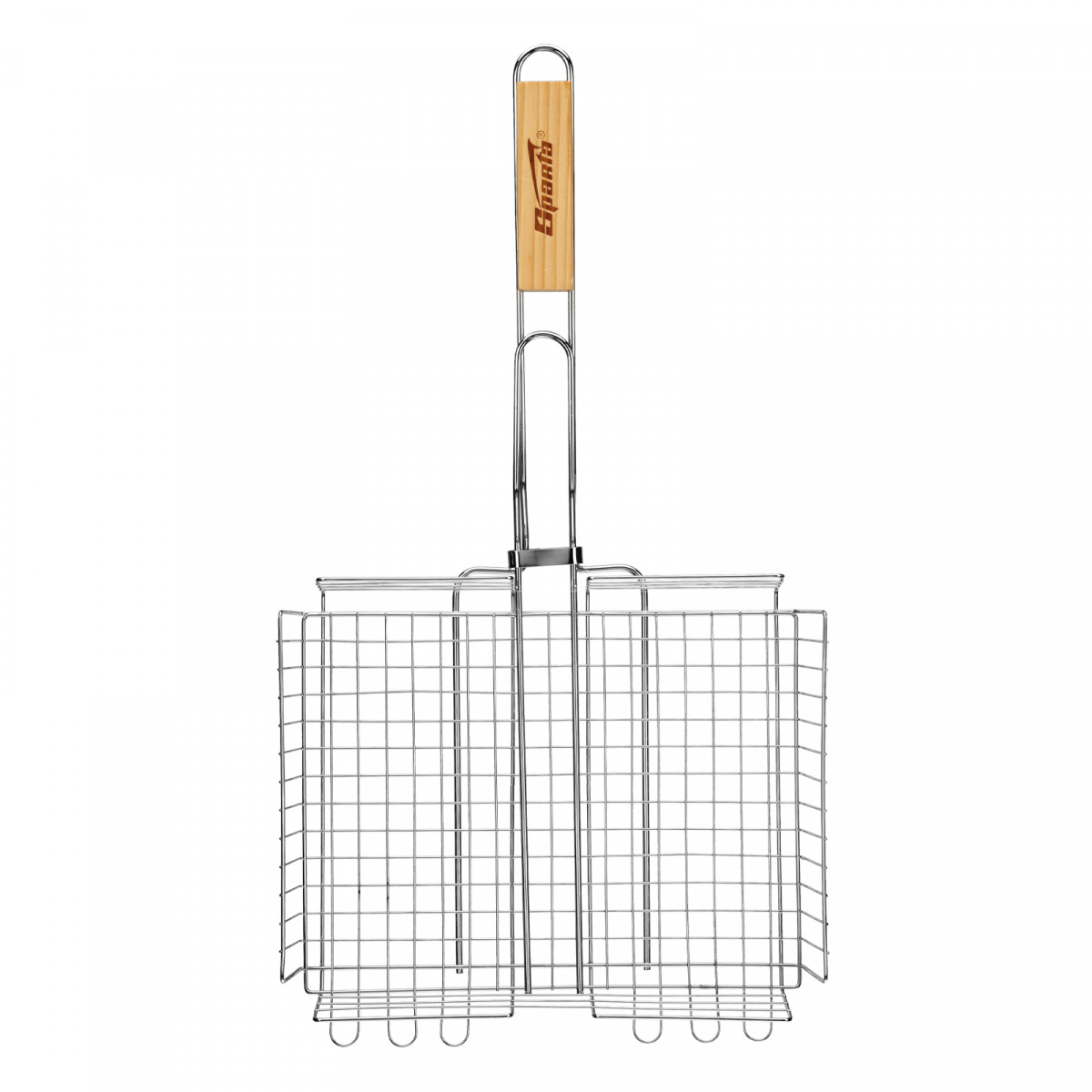 Объемная хромированная решетка-гриль Sparta 69553 размером 240 х 310 х 55 мм используется для удобного размещения продуктов и их приготовления на углях. С ее помощью мясо, рыба или овощи обжариваются равномерно с двух сторон, что позволяет получить вкусные блюда. За счет регулировки высоты решетки возможно приготовление продуктов любого размера без потери сока.