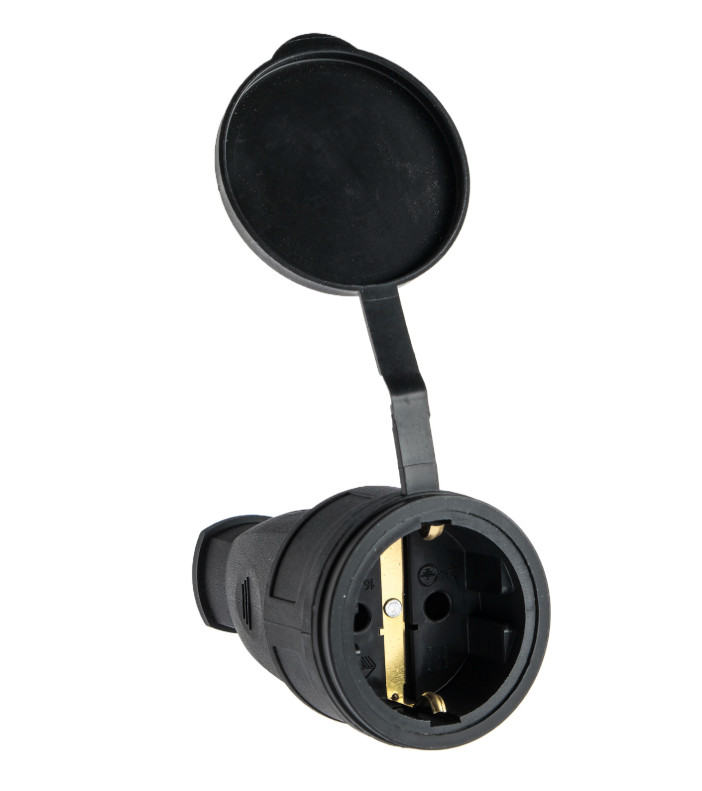 Розетка переносная 16-005 16 А, 250 В IP44 с з/к с заглушкой каучук черная
