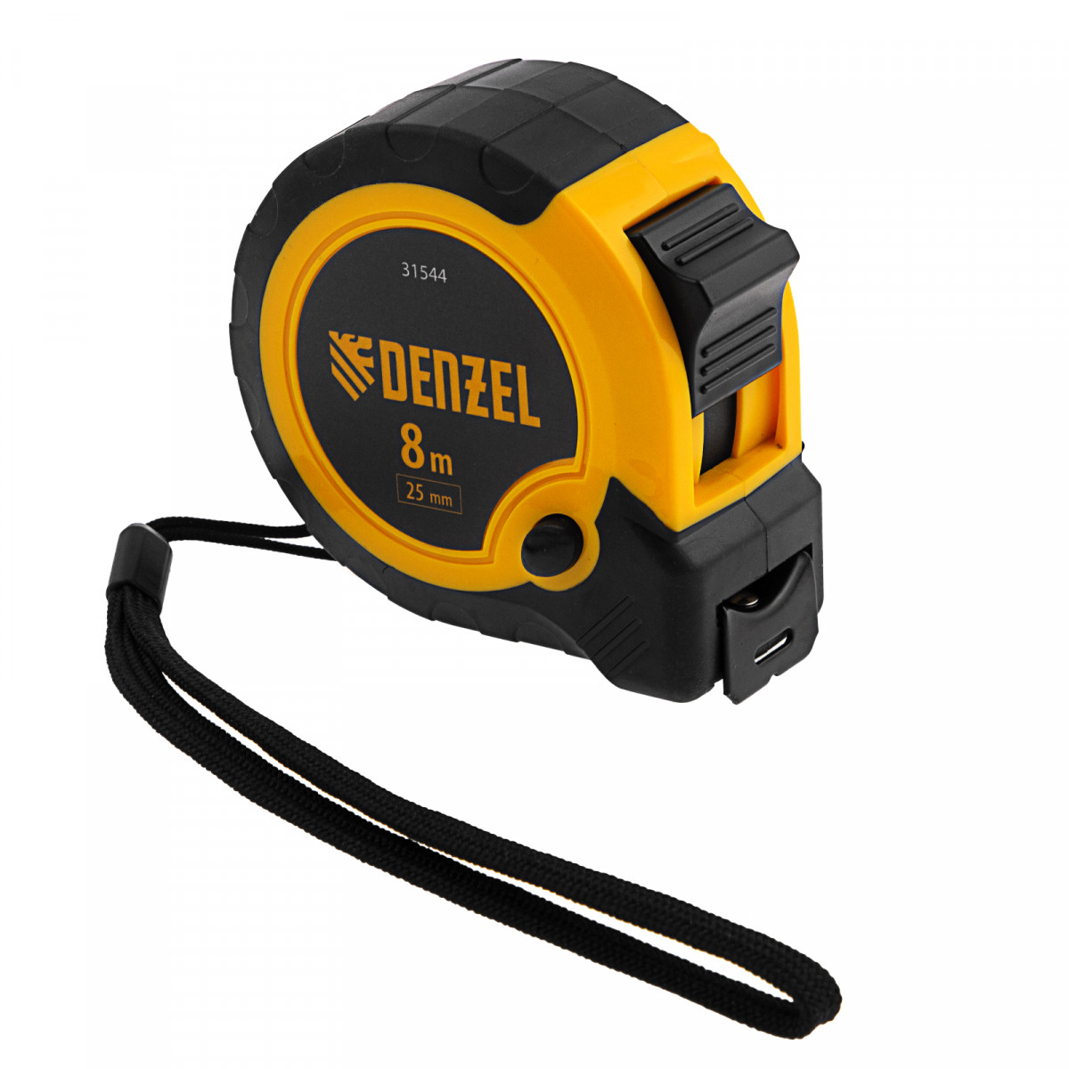 Рулетка 8м х 25мм, двухкомп. корпус, кнопка-пауза Denzel