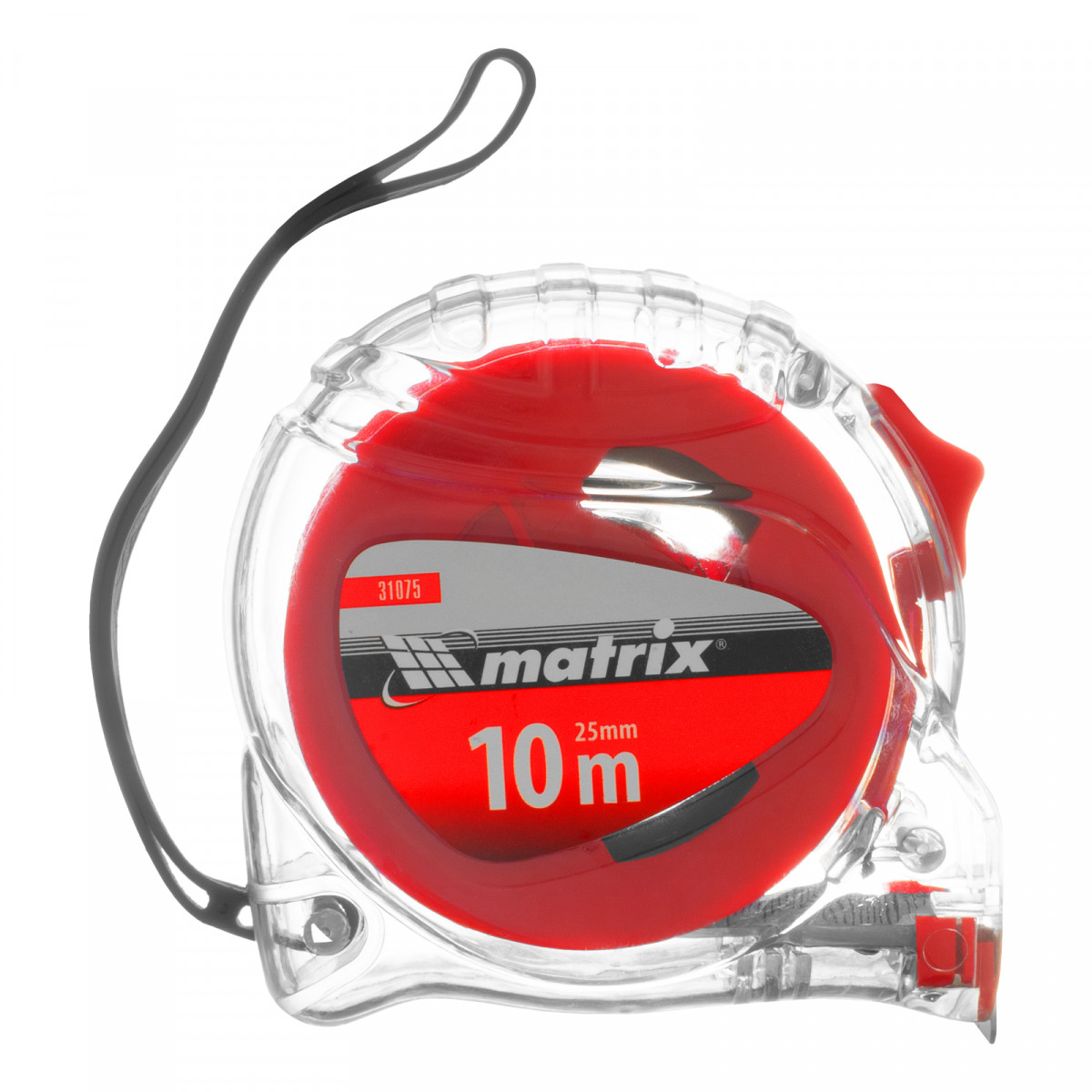 Рулетка Matrix Crystal 31075 с лентой длиной 10 м и шириной 25 мм, в корпусе из поликарбоната, — измерительный инструмент, использующийся как в профессиональной сфере, так и в быту. Отличительной особенностью модели является корпус из высокопрочного поликарбоната, характеризующийся повышенной устойчивостью к механическим повреждениям.