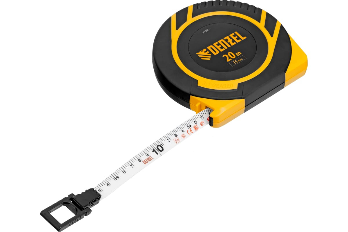 Рулетка геодезическая 20 м х 15 мм закрытый корпус фиберглассовая лента DENZEL