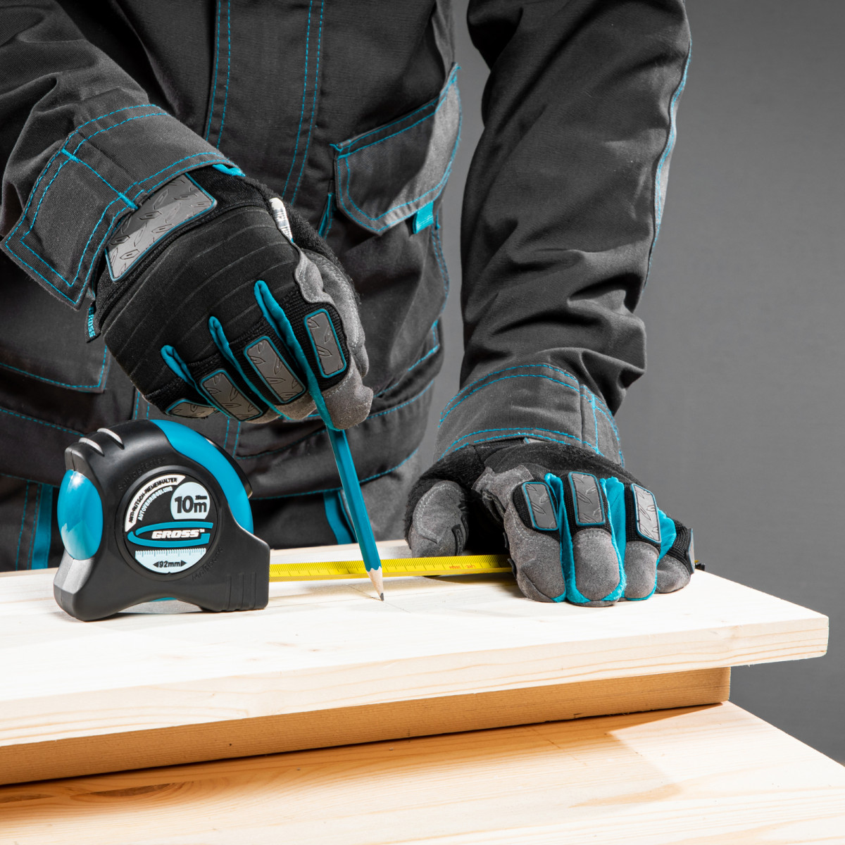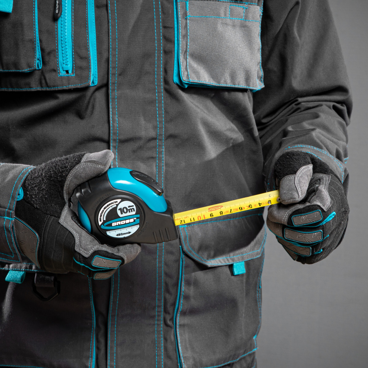 Рулетка Gross «Schlagfest» 31115 с магнитным обрезиненным зацепом, двухсторонней шкалой и функцией автоматической фиксации полотна длиной 10 м и шириной 25 мм, с нейлоновым покрытием, позволяет определять размеры предметов, вычислять площадь помещения и проводить другие измерительные работы. Магнитный обрезиненный зацеп надежно фиксируется на скользких и металлических поверхностях со сложной формой. Широкое упругое полотно облегчает работу в труднодоступных местах. Карманная рулетка пригодится на строительной площадке и в быту.