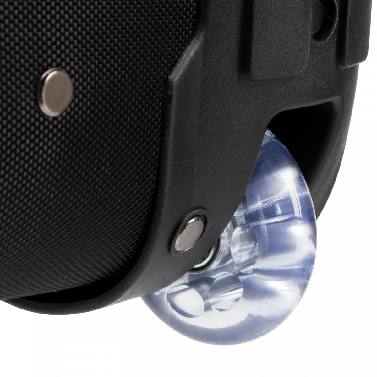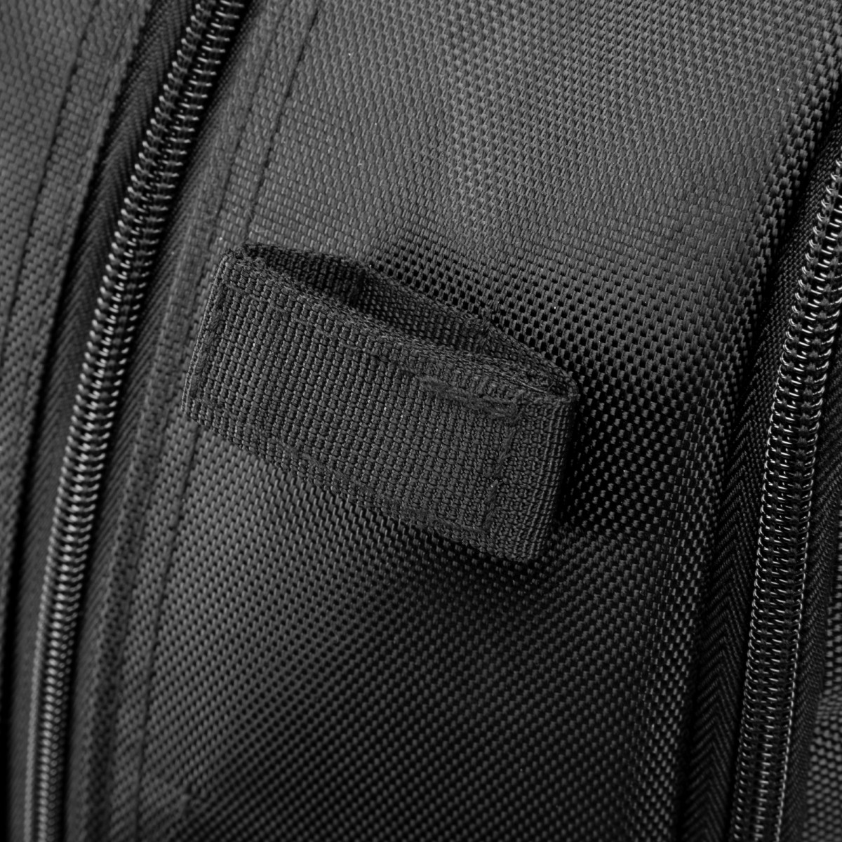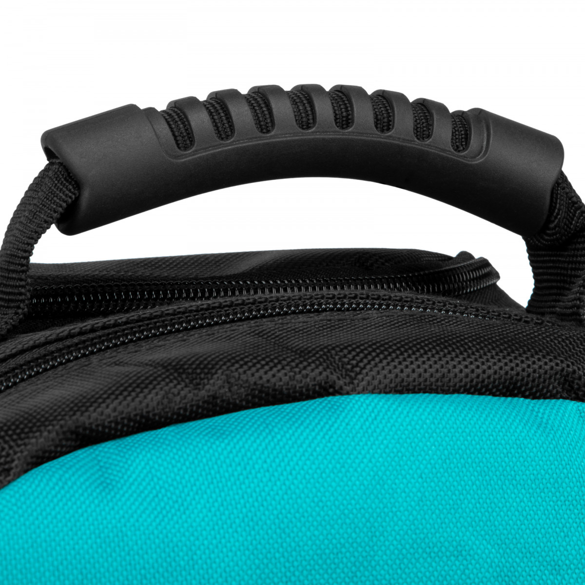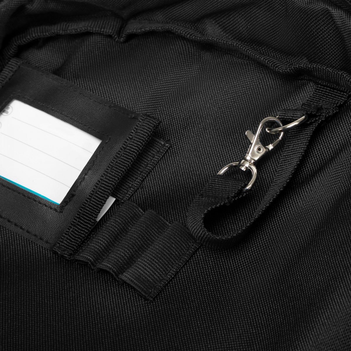 Выдвижная рукоятка и колеса облегчают транспортировку рюкзака с инструментами.