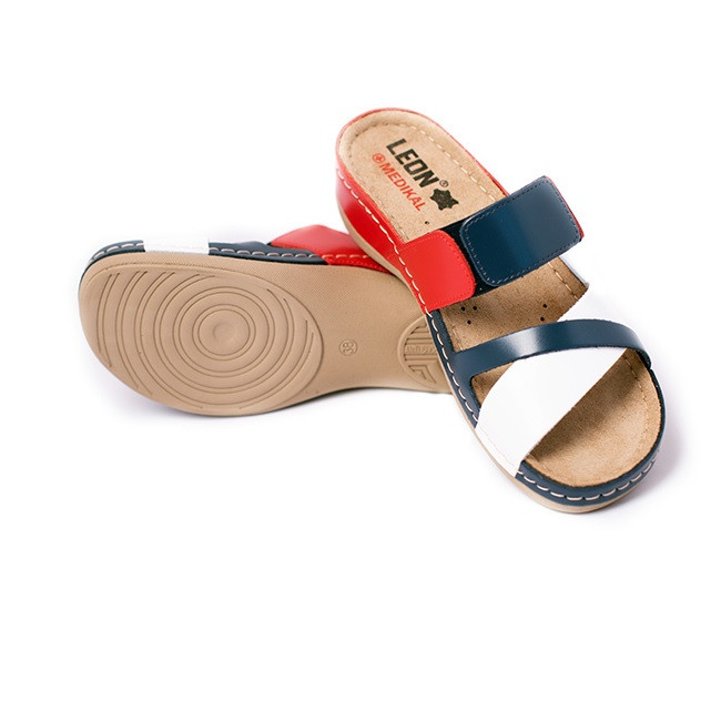 Сабо Леон - ортопедические женские кожаные сабо MED909 разработаны при участии врачей ортопедов. Натуральная кожа использована для верха, подкладки и стельки обуви. Модель оснащена анатомической стелькой с эффектом памяти и углублением ложа стопы, которая обеспечит комфорт при длительном ношении. Слой массажной пены с памятью расположен под кожаной стелькой и принимает форму вашей ступни. При ходьбе осуществляется массажное воздействие на ступню, что улучшает кровообращение и снижает отечность ног.Ортопедические женские сабо и сандалии рекомендованы для профессионального использования. Подходят для врачей, поваров, парикмахеров. Удобно дома, на пляже, у бассейна.Легкая полиуретановая подошва, оснащена амортизационной вставкой, что уменьшает усталость ног. Не скользящая основа позволит чувствовать себя уверенно на кафеле и паркете.Верх обуви изготовлен из мягкой натуральной кожи, устойчивой к износу. Удобные ремешки регулирует полноту и подъем по ноге.
