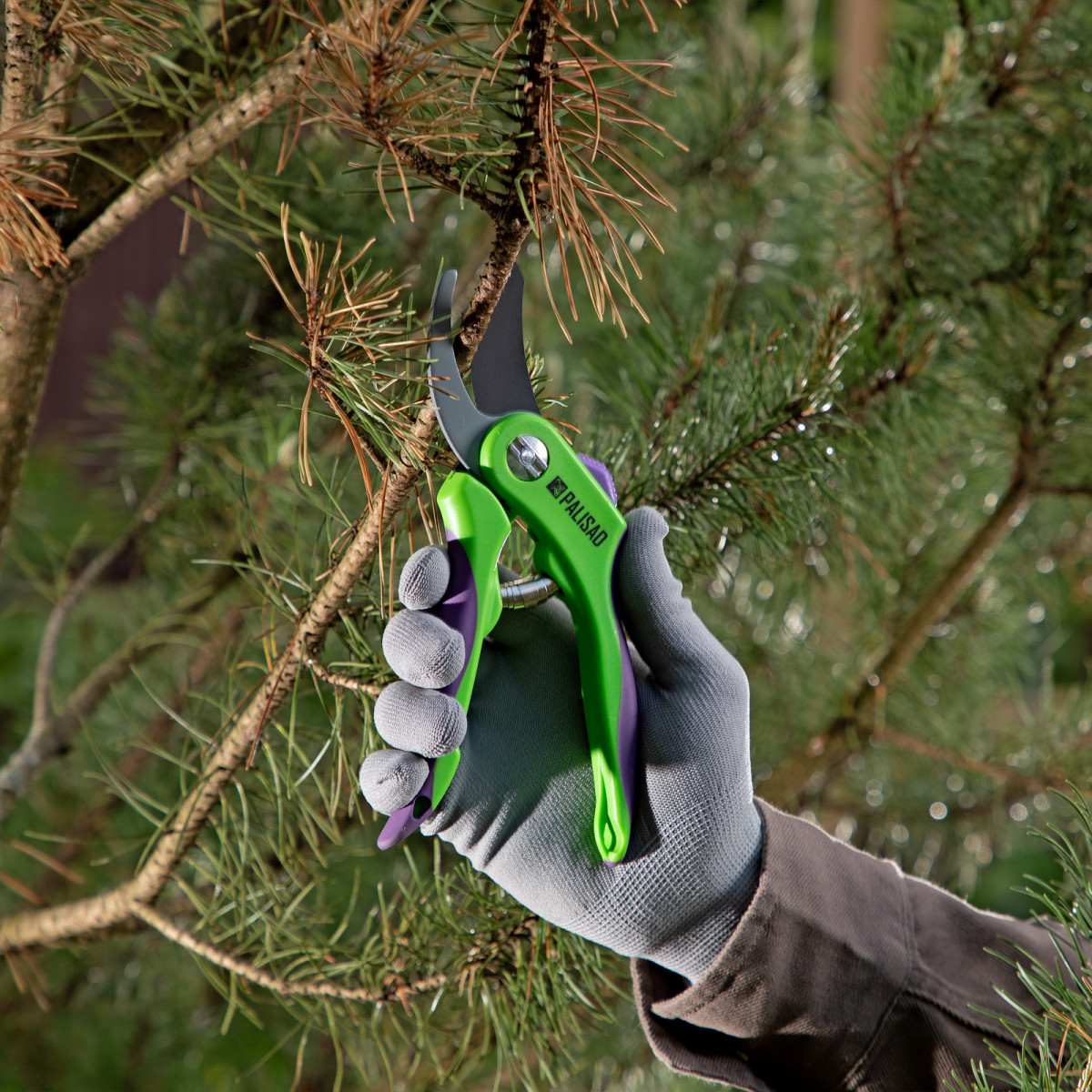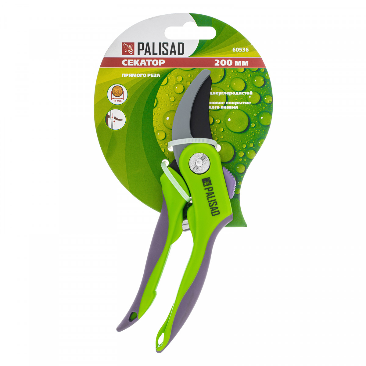 Секатор прямого реза Palisad 60536 длиной 200 мм, с двухкомпонентными рукоятками, способен обрезать живые ветки толщиной до 15 мм и используется для ухода за растительностью. Имеет режущее лезвие с прецизионной заточкой и тефлоновым покрытием, движущееся в параллельной плоскости с опорным лезвием, поэтому срез получается гладким и ровным. Повреждения растения при этом минимальны. Плотность смыкания лезвий регулируется винтом. Секатор будет полезен на дачном участке.
