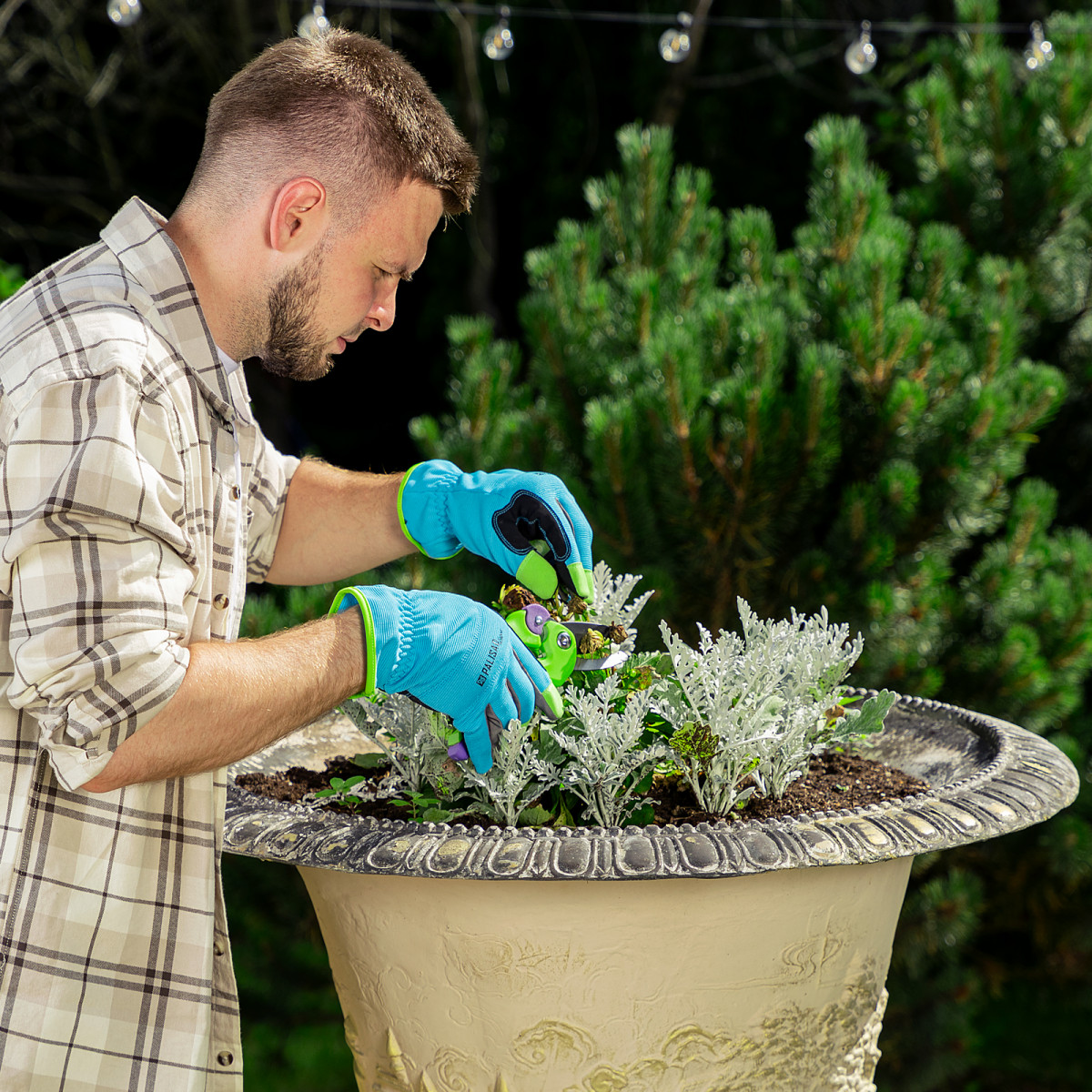 Секатор прямого реза Palisad 60532 длиной 210 мм, с шестеренным приводом и двухкомпонентными рукоятками, используется для щадящей обрезки живых веток толщиной до 20 мм. Режущее лезвие с тефлоновым покрытием легко справляется с этой задачей. Лезвия перемещаются в параллельных плоскостях, поэтому секатор производит чистый и ровный срез, минимально повреждая растение. Шестеренный привод увеличивает силу сжатия на 15%.
