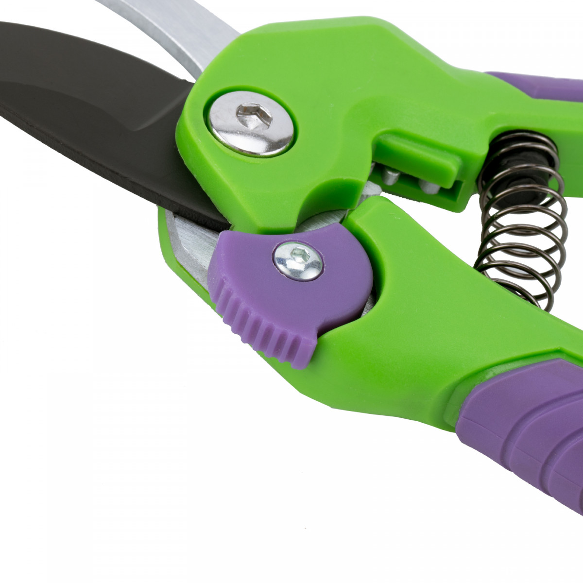 - Безопасное хранение и транспортировка — фиксатор удерживает лезвия в сомкнутом положении, не давая им самопроизвольно раскрыться.
