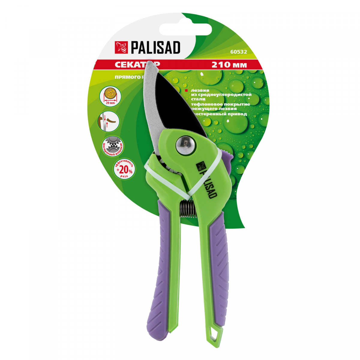 Секатор прямого реза, 210 мм, шестеренный привод, двухкомпонентные рукоятки, Palisad