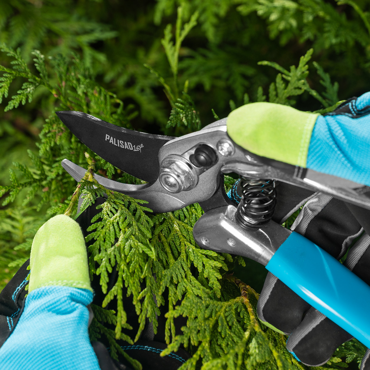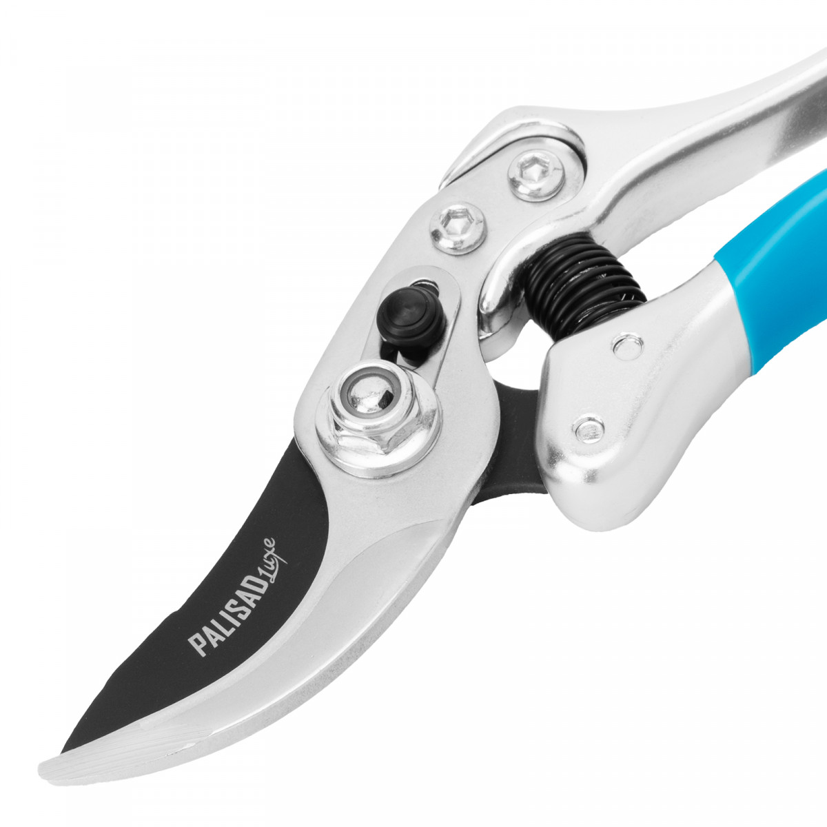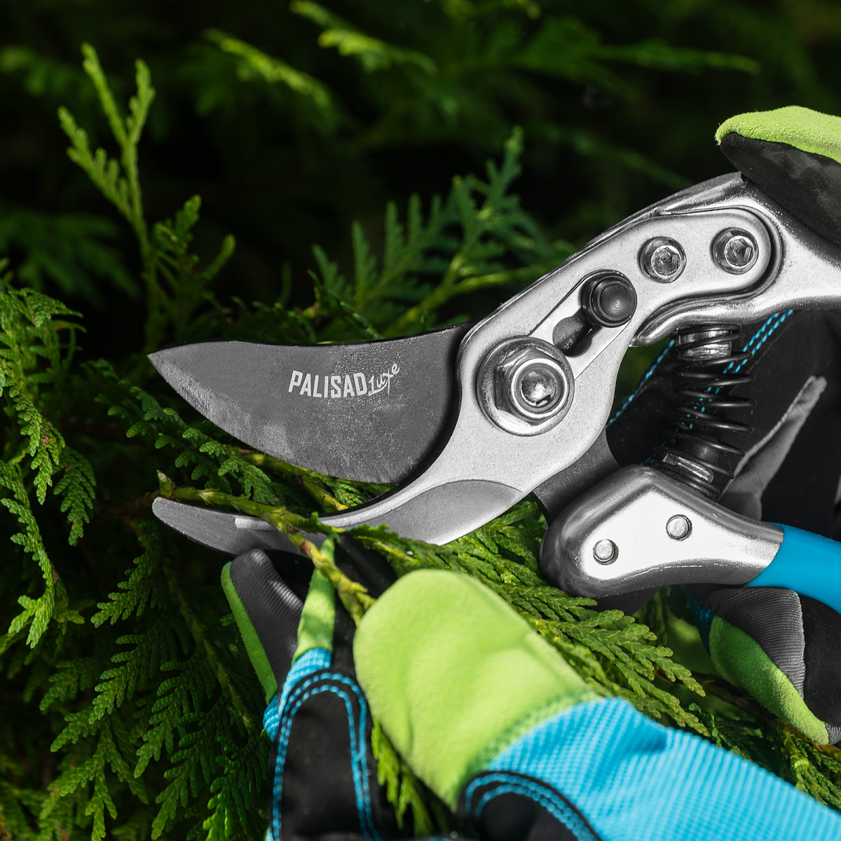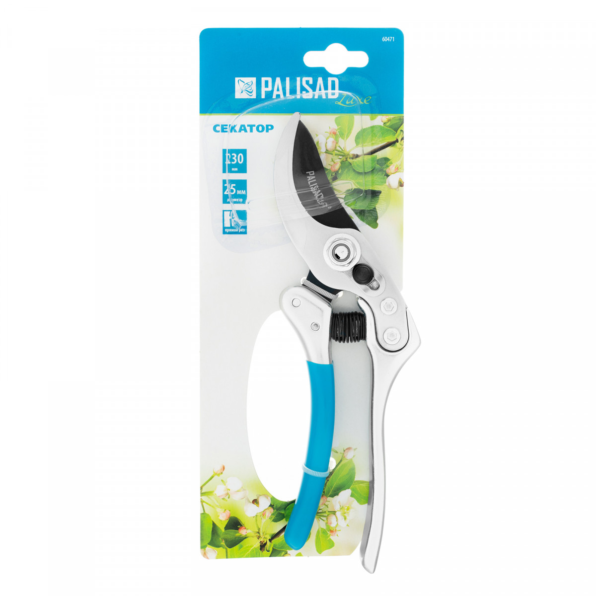 Усиленный секатор прямого реза Palisad LUXE 60471 длиной 230 мм, с нижней рукояткой в ПВХ-оболочке, — инструмент, позволяющий срезать живые ветки толщиной до 25 мм. Срез получается чистым и ровным, поскольку лезвия движутся в параллельных плоскостях. Вред для растения при обрезке минимален. Секатор легко справляется с толстыми ветками благодаря тефлоновому покрытию режущего лезвия и увеличенному шарниру, усиливающему сжатие на 10%. Посредством винта можно регулировать плотность примыкания лезвий. Инструмент будет полезен на дачном участке.
