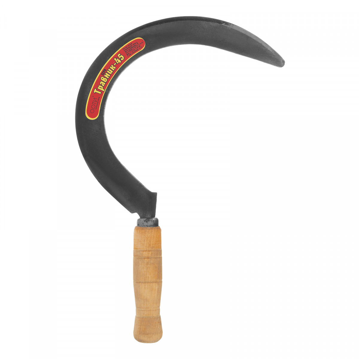 Серп с острым полотном АРТИ «Травник - 45» 64104 с шириной захвата 210 мм используется для срезания травы. Остро заточенное рабочее полотно легко справляется даже с сочными стеблями. Полотно отбито и заточено на заводе, поэтому серп полностью готов к эксплуатации.