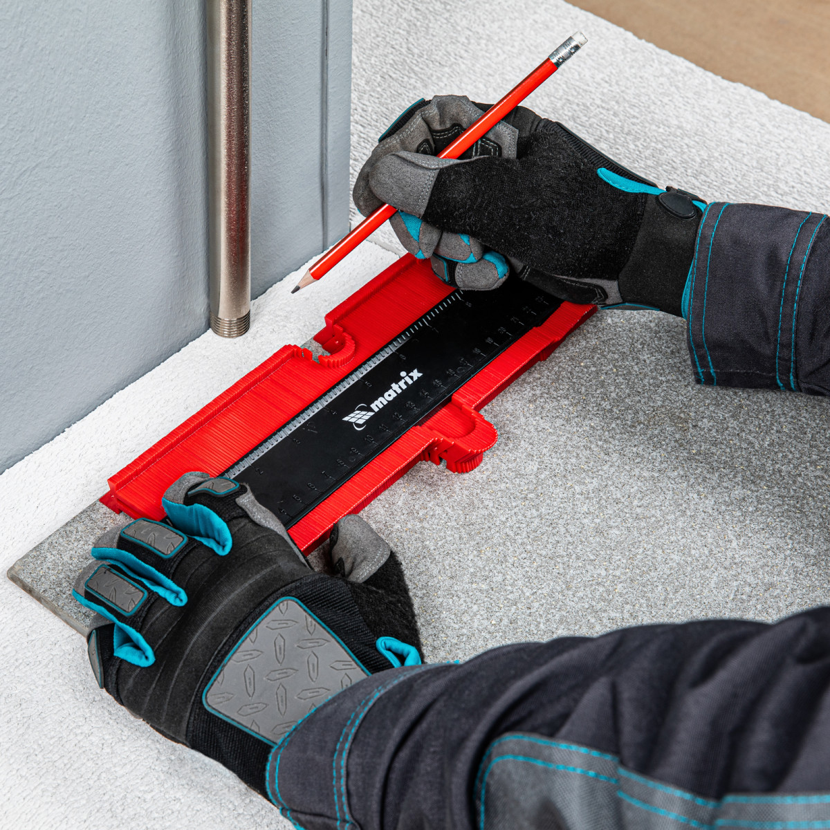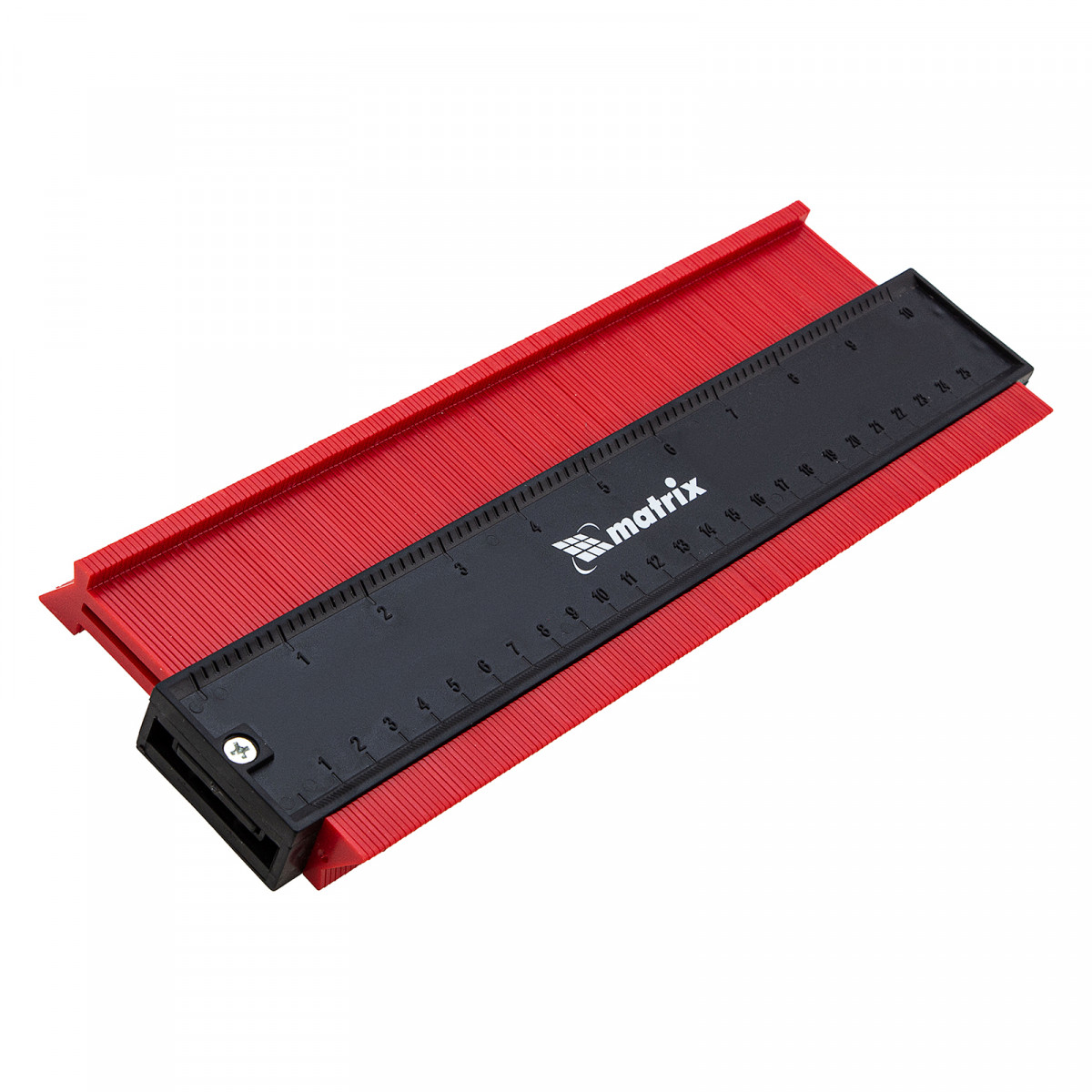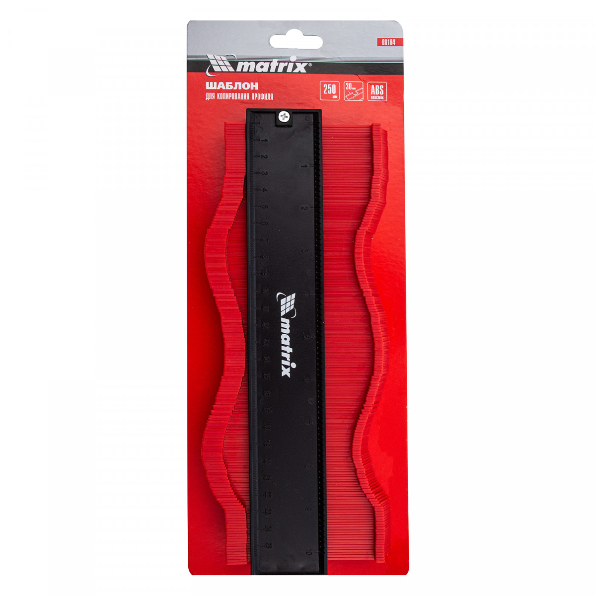 Пластиковый шаблон для копирования профиля Matrix 88104 предназначен для копирования и переноса контуров различных форм. Шаблон необходим для точной подрезки отделочных материалов (ламинат, линолеум, кафельная плитка, гипсокартон и др.) при обходе труб водоснабжения, углов и других рельефных препятствий. Перенос контуров осуществляется при помощи выдвижных пластиковых пластин. Шаблон оснащен измерительной шкалой длиной 25 см.