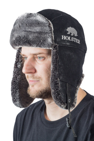 Шапка ушанка зимняя Авиатор, кож. зам черныйй Хольстер