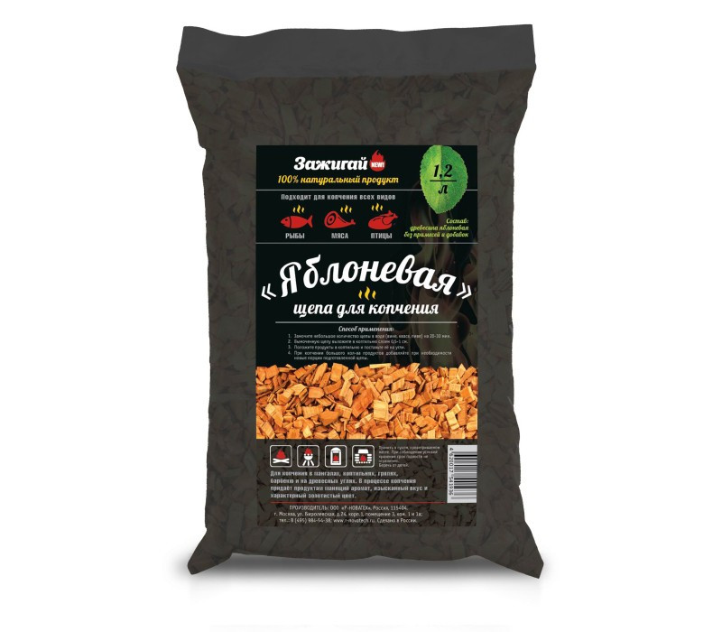 Древесная щепа для копчения - это идеальный выбор для тех, кто хочет придать своим блюдам неповторимый аромат и вкус. Щепа изготовлена из натурального дерева яблони, которое обладает нежным фруктовым ароматом и приятным сладковатым вкусом. Она упакована в удобный пакет объемом 1,2 литра, который легко хранить и использовать. Древесная щепа для копчения подходит для копчения мяса, рыбы, овощей и других продуктов, и поможет создать настоящий шедевр на вашей кухне.