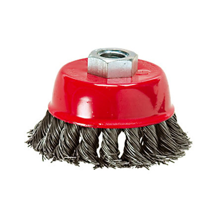 Щетка Matrix «Чашка» 74629 диаметром 150 мм, с присоединительной резьбой М14, с щетиной из крученой проволоки диаметром 0,5 мм, устанавливается на УШМ, поддерживающую работу со скоростью 4500 об/мин. Изделие предназначено для грубой (черновой) обработки поверхностей и подходит для удаления загрязнений, снятия толстого слоя ржавчины, ЛКМ, зачистки сварных швов.