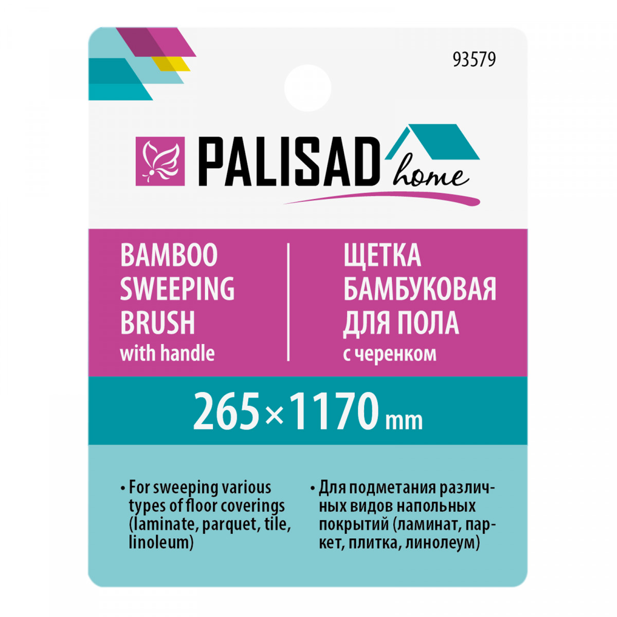 Бамбуковая щетка для подметания пола Palisad Home 93579 длиной 117 мм, с черенком и рабочей частью шириной 26,5 см, предназначена для сухой уборки различных видов напольных покрытий: паркета, ламината, плитки, линолеума и других. Колодка и черенок из высококачественного бамбука не впитывают влагу, поэтому щетка прослужит долго.