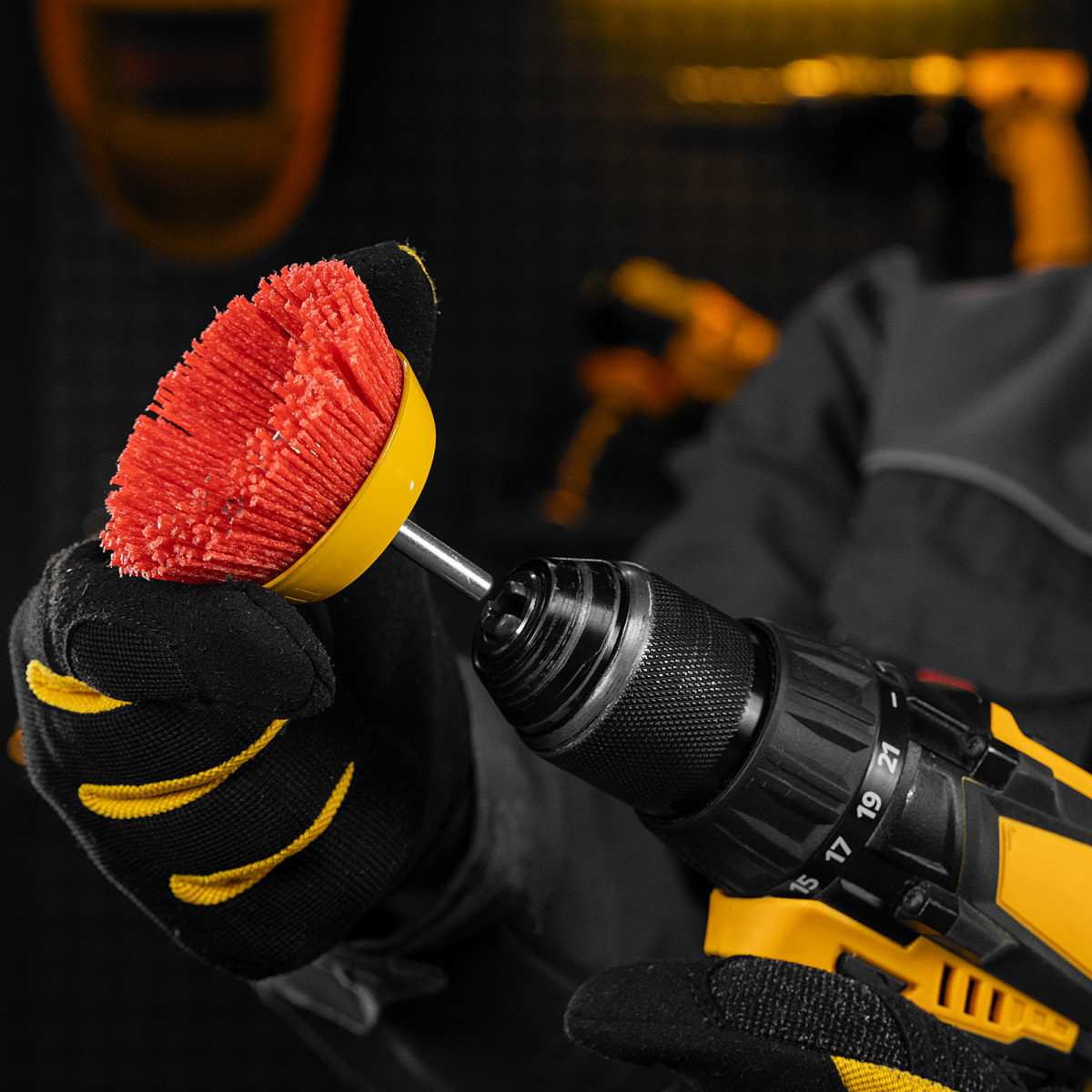 • Высокое качество обработки — в отличие от металлической, нейлоновая щетина не оставляет следов на деревянных поверхностях.