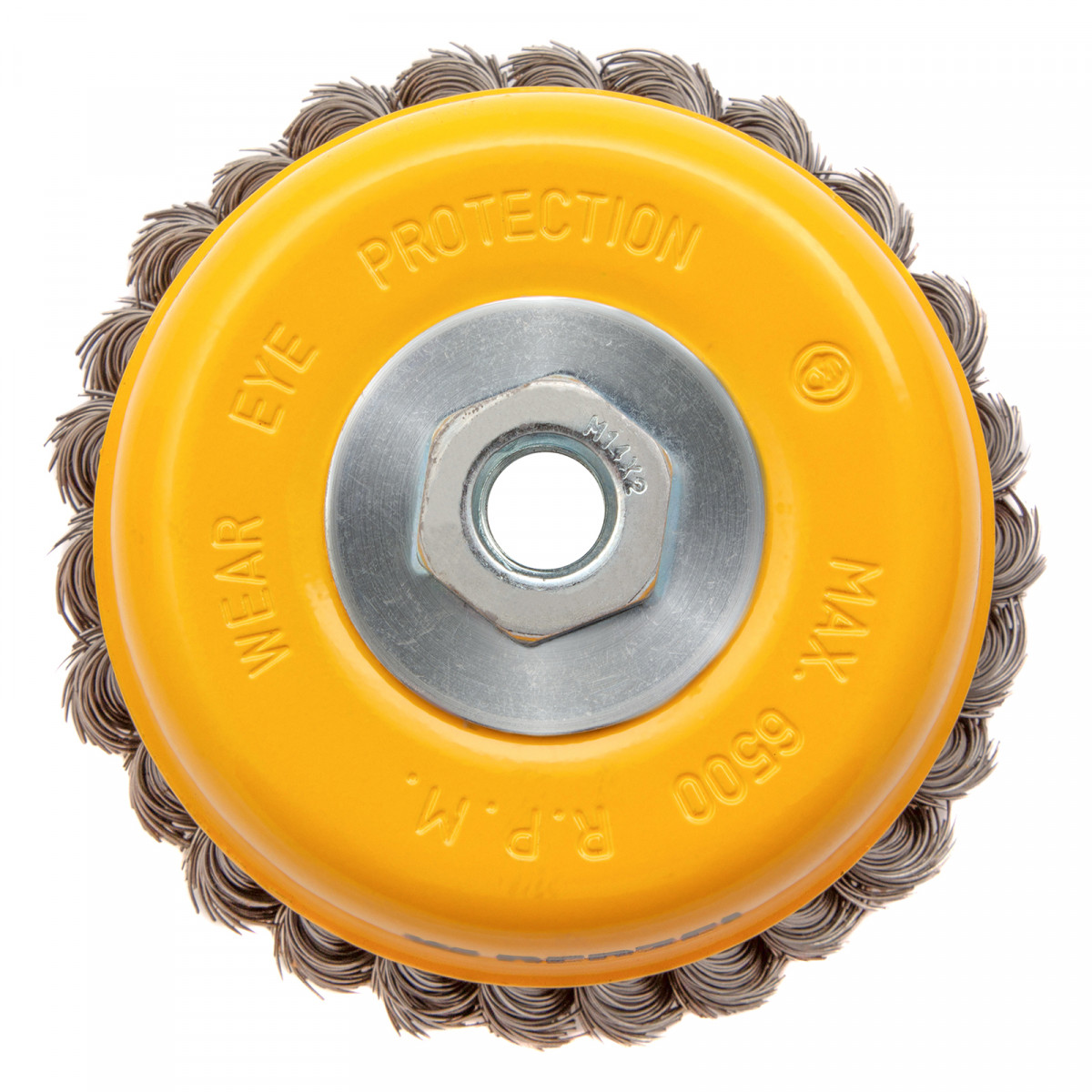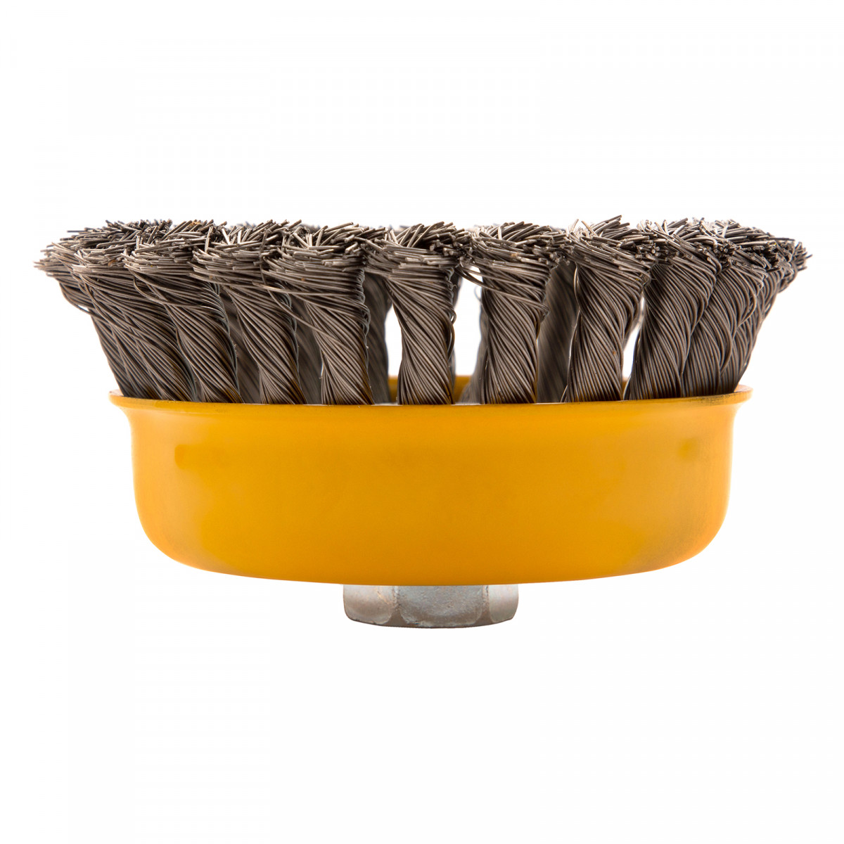Щетка для УШМ, 125 мм, "Чашка", крученая нержавеющая проволока 0.5 мм, М14 Denzel