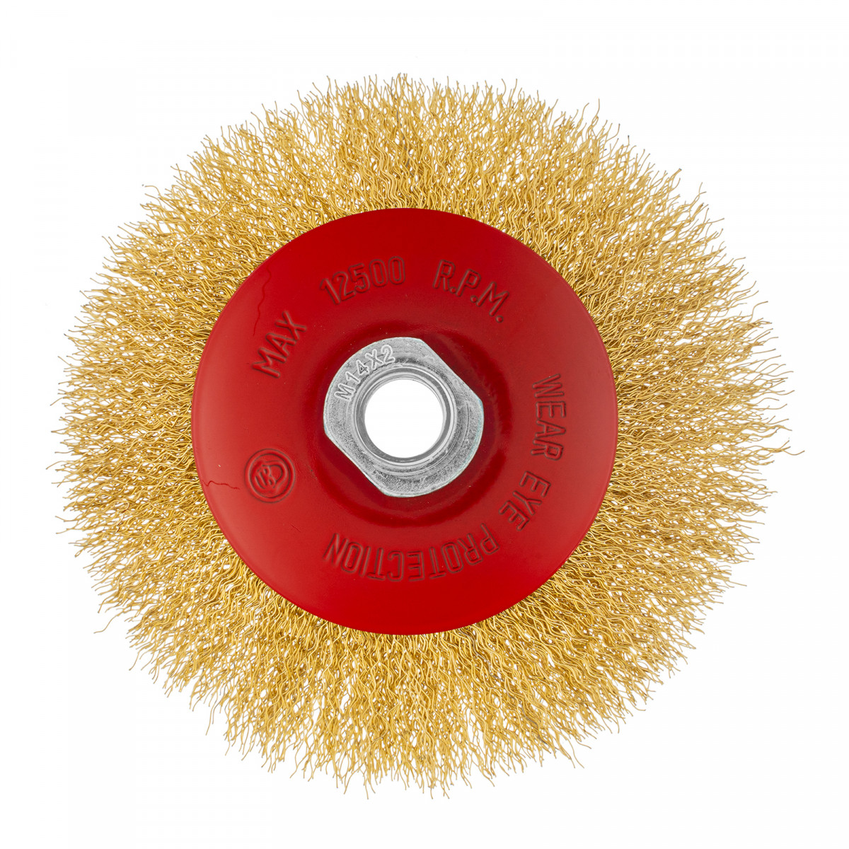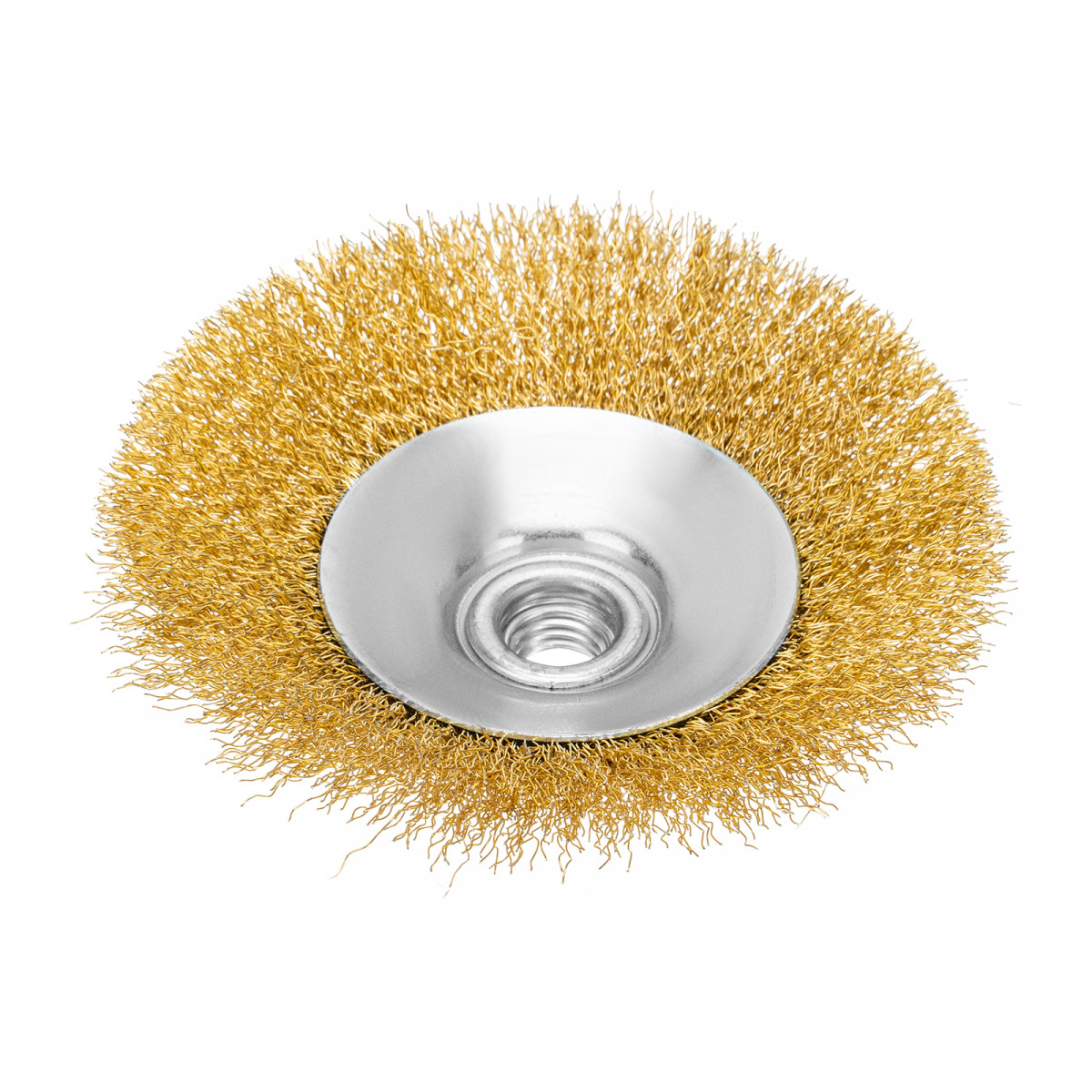 Щетка для УШМ, 125 мм, М14, "тарелка", латунированная витая проволока Matrix