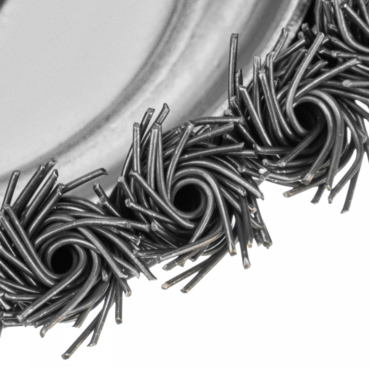 - Универсальность — щетка подходит для обработки любых твердых материалов: металла, древесины, цветных металлов, пластика и т. д.